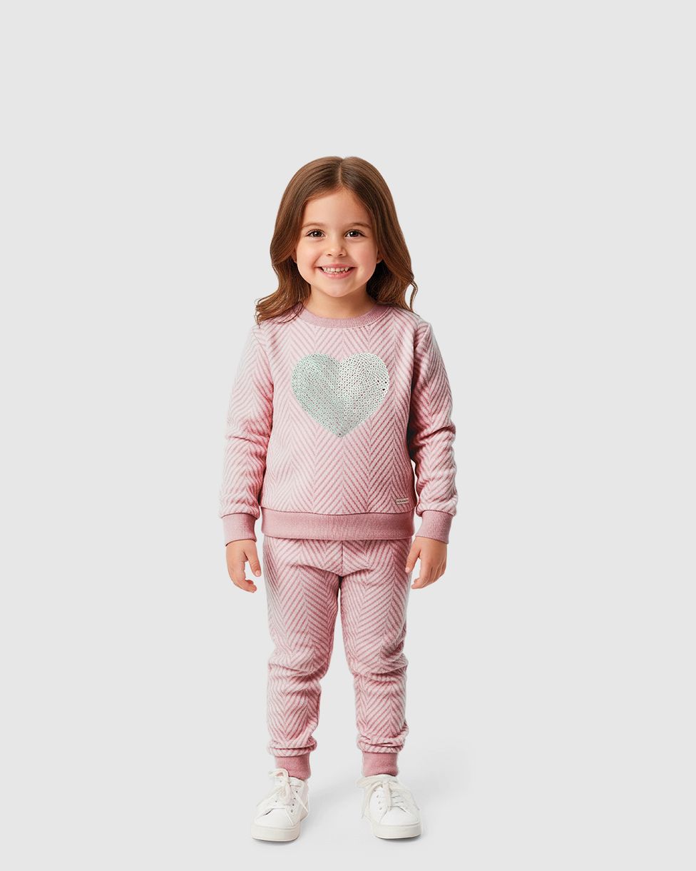 Conjunto Menina Bordado Coração Lantejoula Em Moletinho Texturizado - Carinhoso