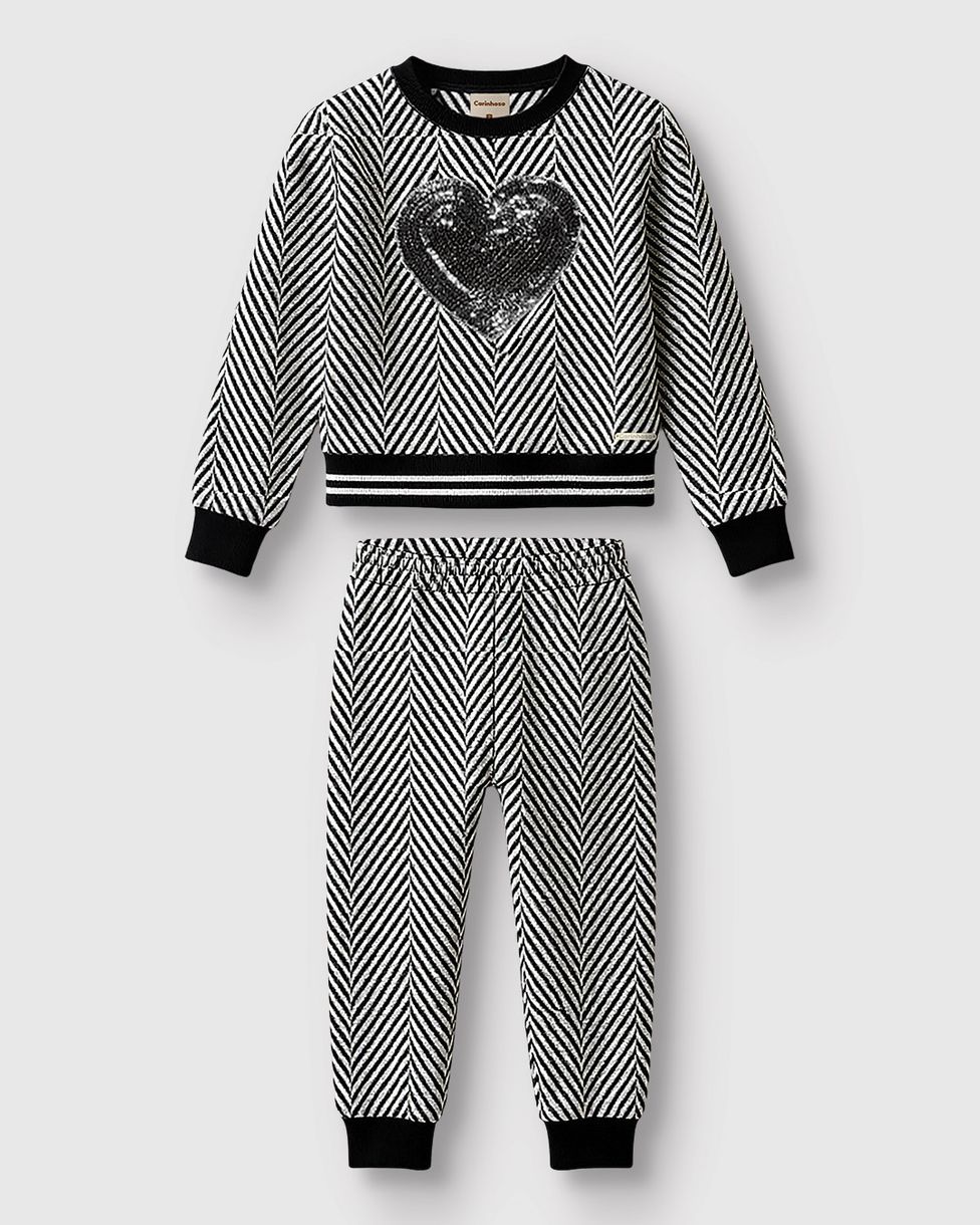 Conjunto Menina Bordado Coração Lantejoula Em Moletinho Texturizado - Carinhoso