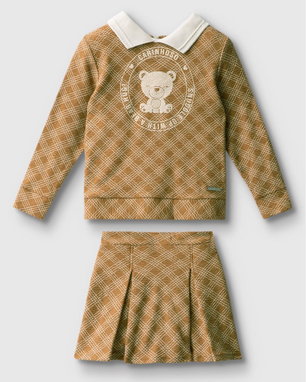 Conjunto Menina Estampa Xadrez Em Malha Texturizada - Carinhoso