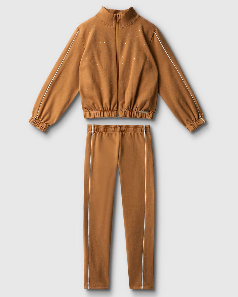 O Conjunto Menina Jaqueta com Strass em Moletom Stretch Flanelado - Carinhoso é a combinação perfeita de conforto e brilho delicado. Ideal para dias mais frios, mantém sua garota quentinha e estilosa. Um conjunto que alia praticidade e detalhes sofisticados para um visual encantador.