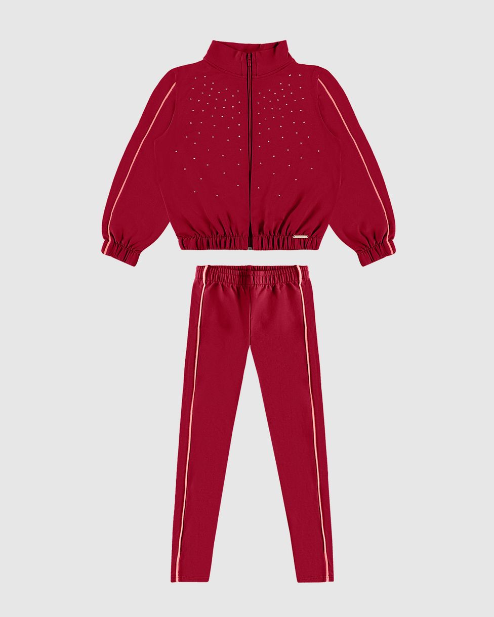 Conjunto Menina Jaqueta Com Strass Em Moletom Stretch Flanelado - Carinhoso