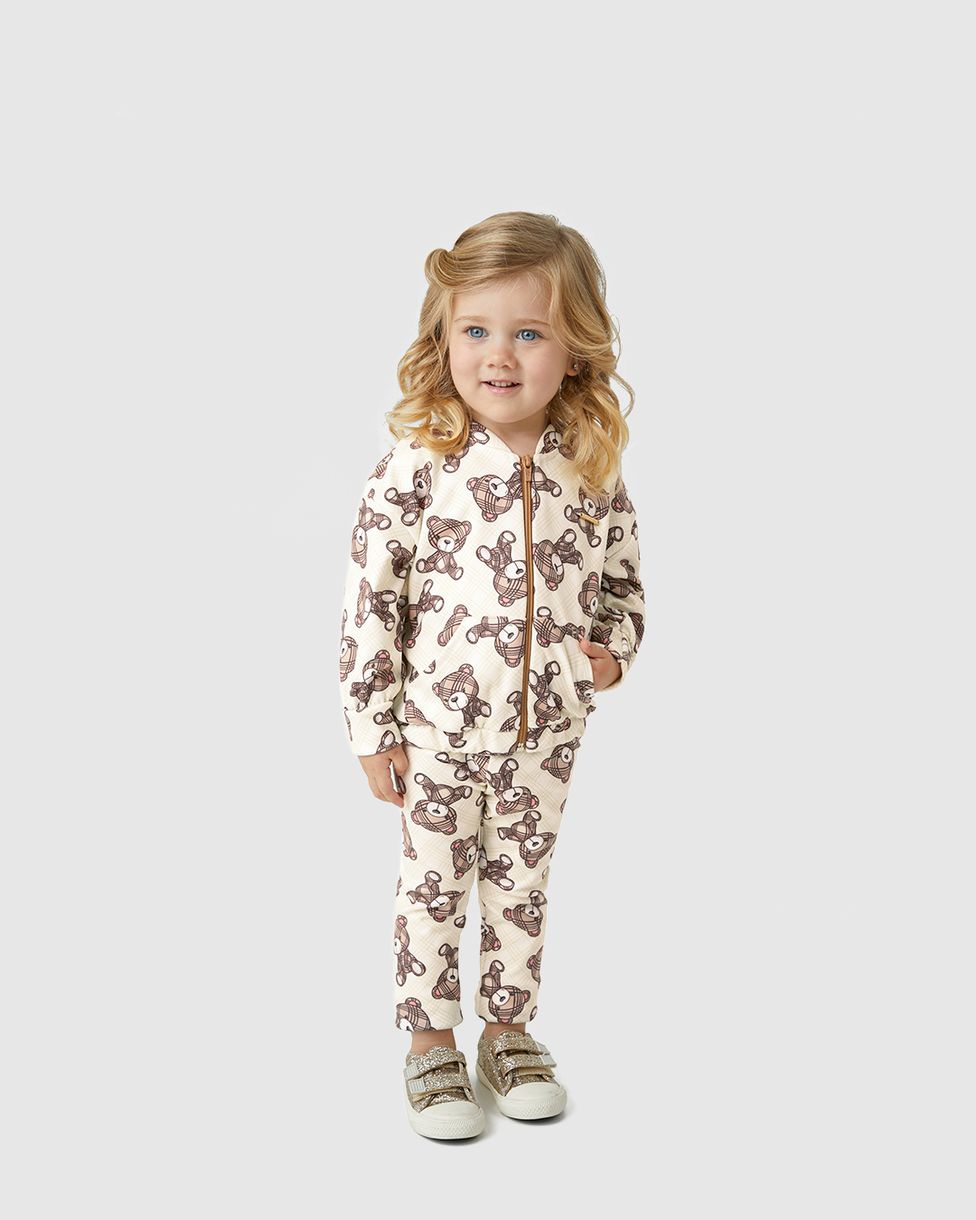 Conjunto Menina Jaqueta E Calça Estampa Ursinho Em Tecido Soft - Carinhoso