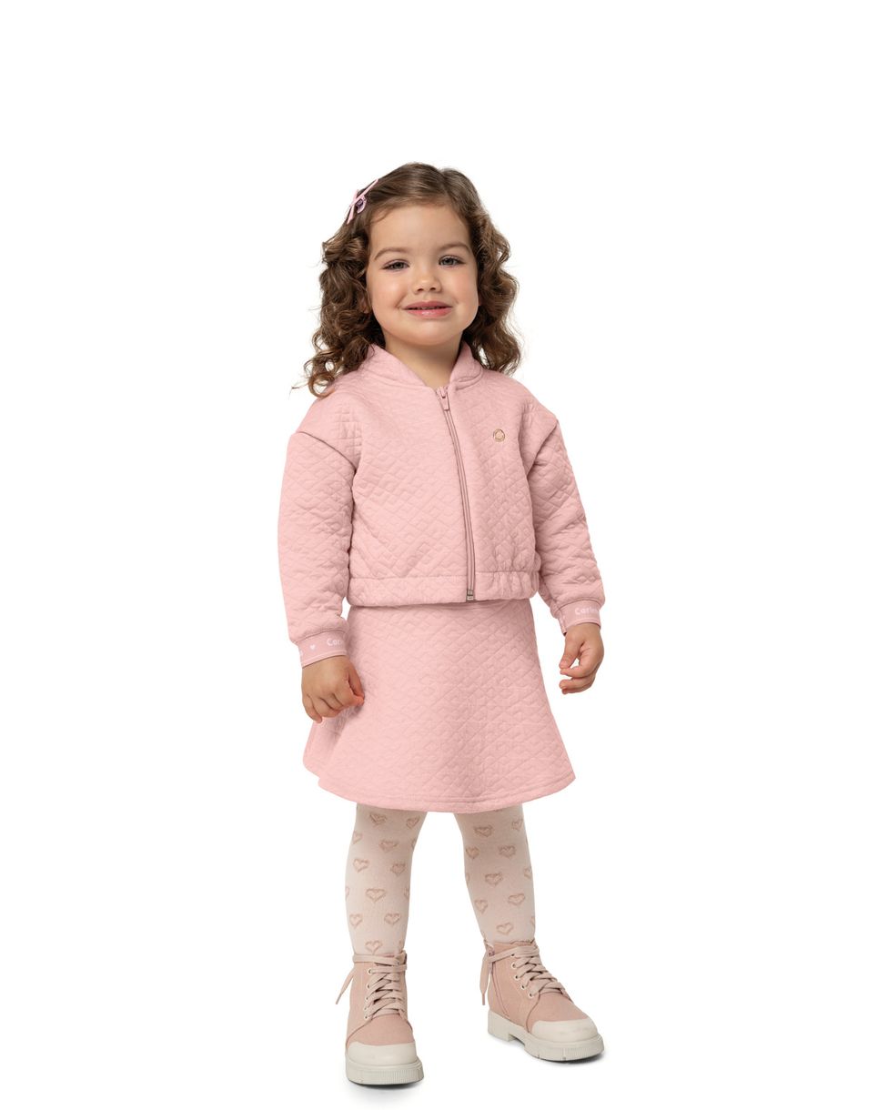 Conjunto Menina Jaqueta E Shorts Saia Em Malha Metalassê - Carinhoso