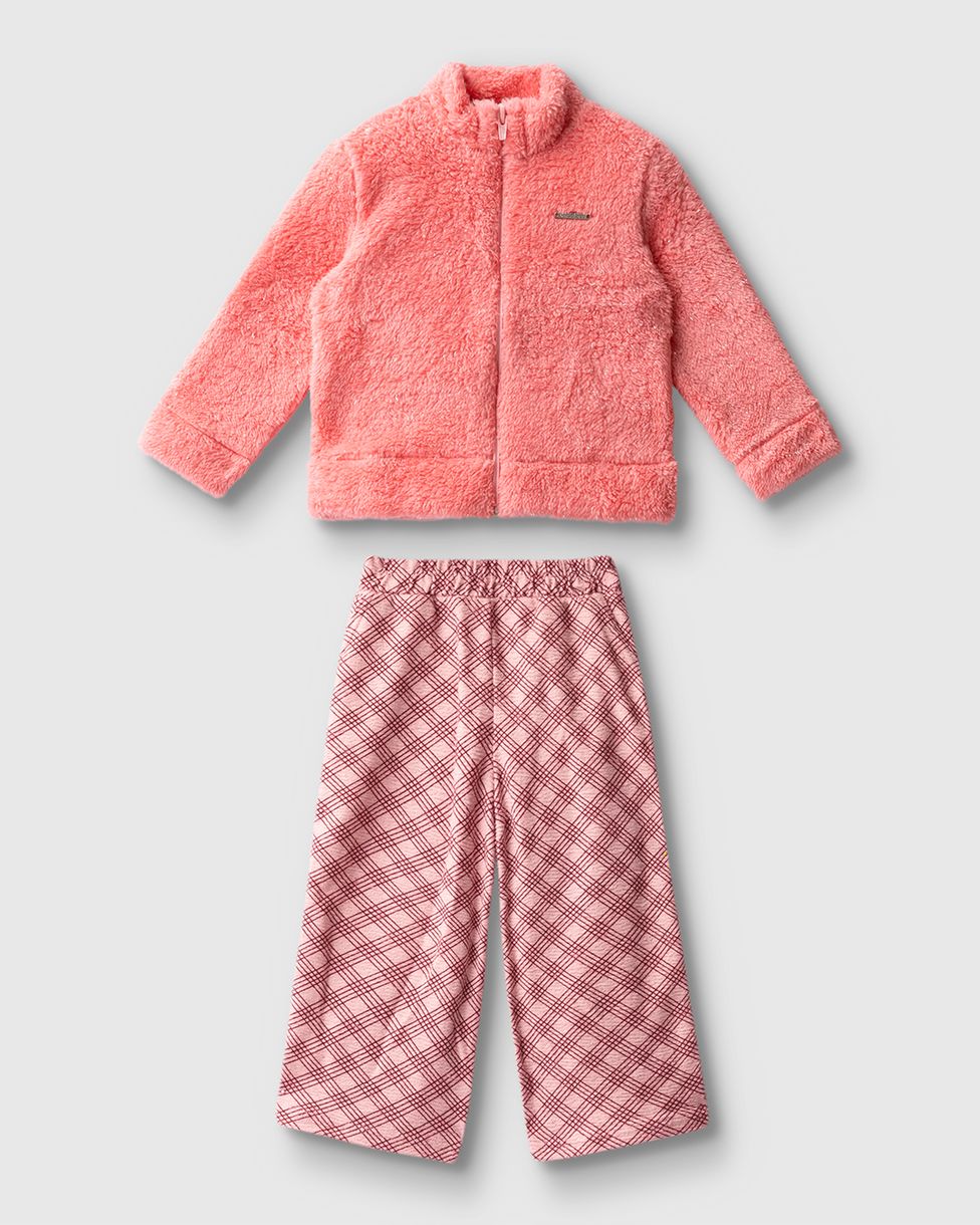 Conjunto Menina Jaqueta Em Pelúcia E Calça Estampada - Carinhoso