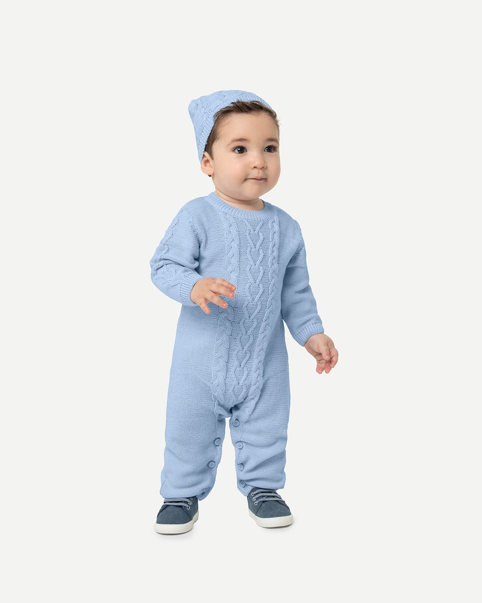 Conjunto Menina Macacão E Touca Em Tricô - Carinhoso