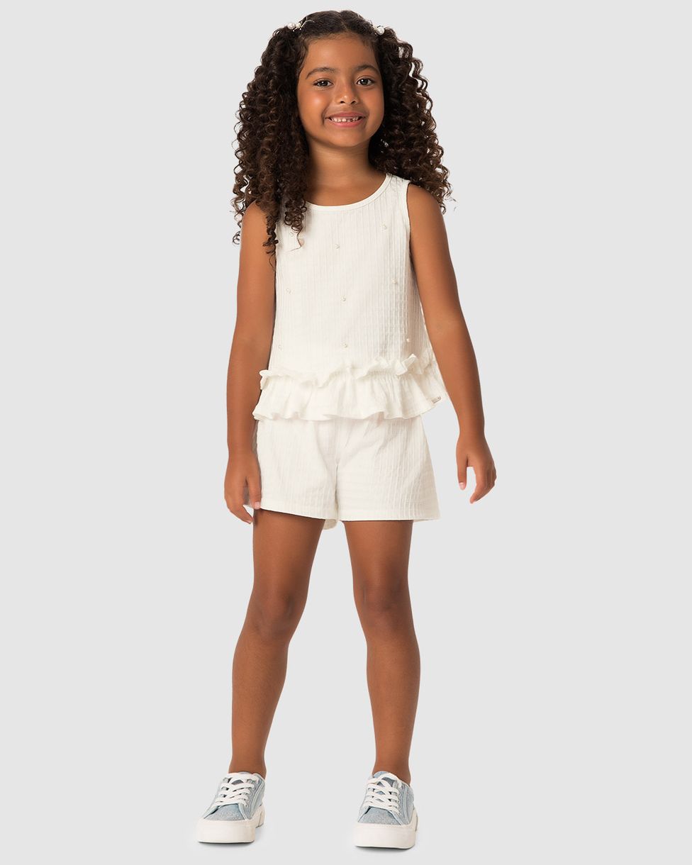 Conjunto Menina Regata Com Aplique De Pérolas Malha Texturizada - Carinhoso