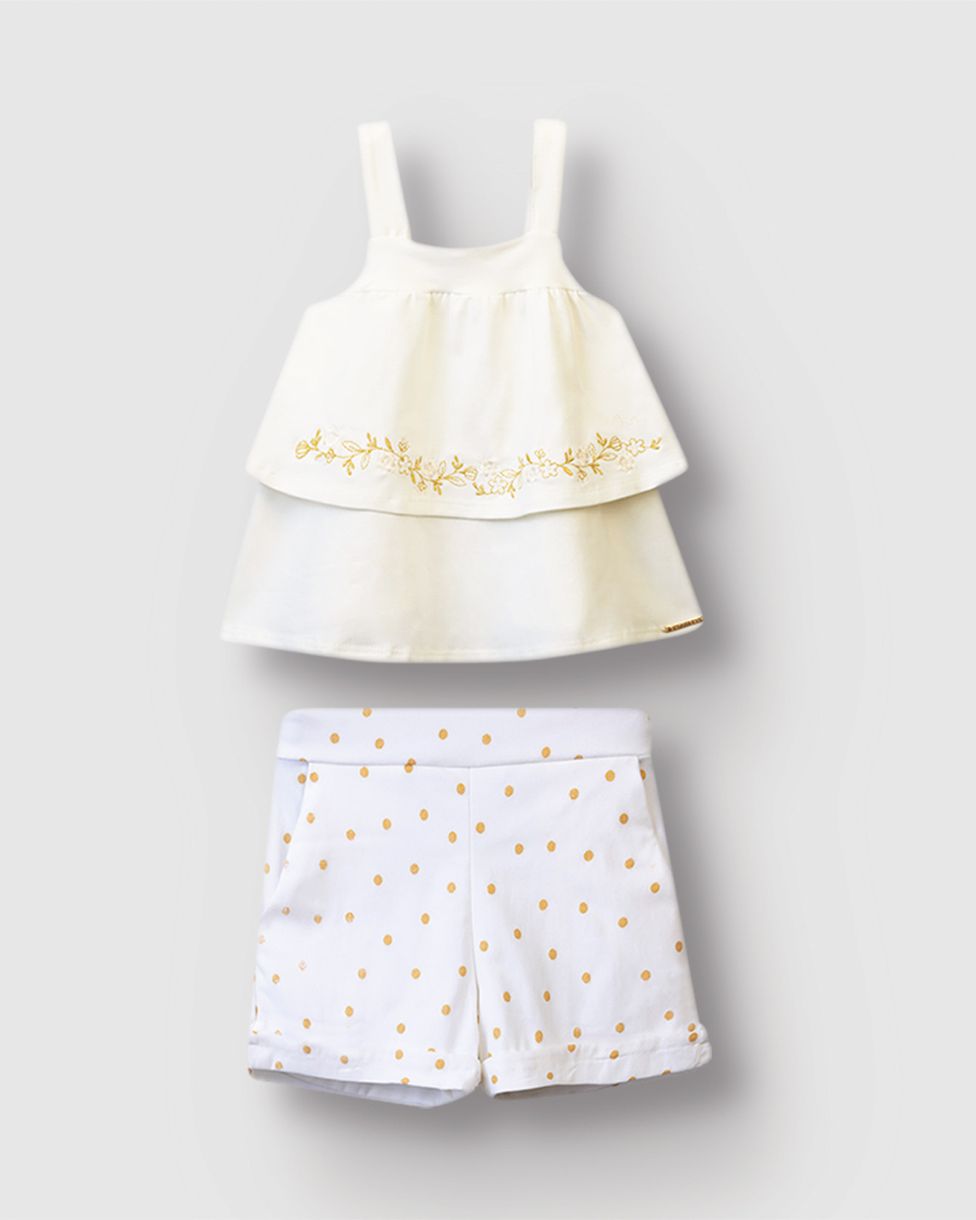 Conjunto Menina Regata Com Bordado E Shorts Estampa Poá - Carinhoso