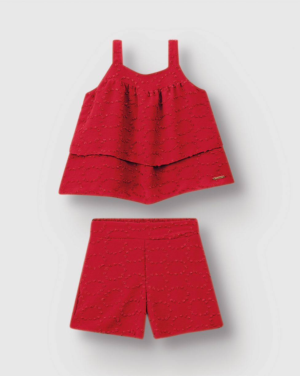 Conjunto Menina Regata E Shorts Em Tecido Plumetis Brilho - Carinhoso
