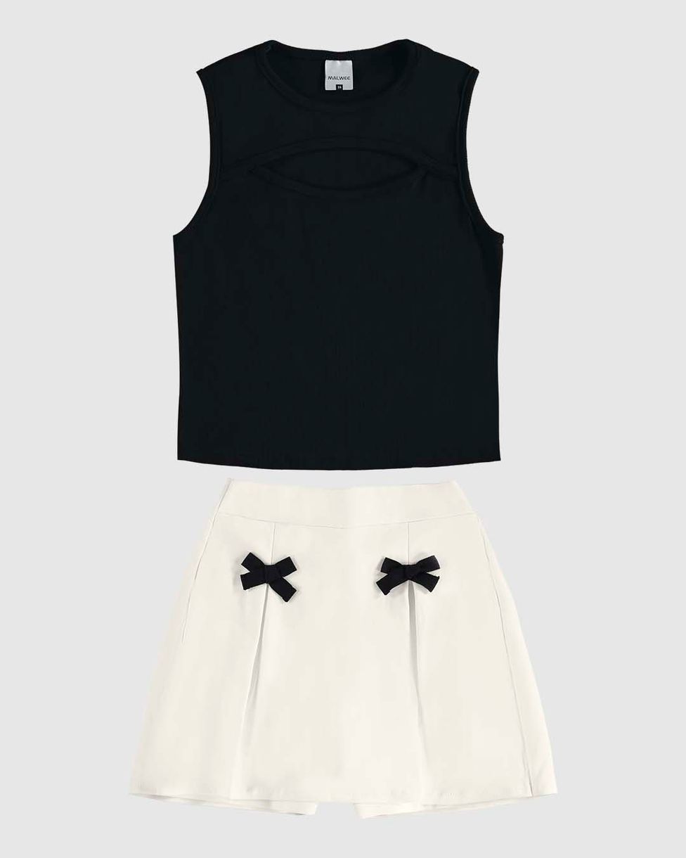 Conjunto Menina Regata E Shorts Saia Com Laço Decorativo Malwee Kids