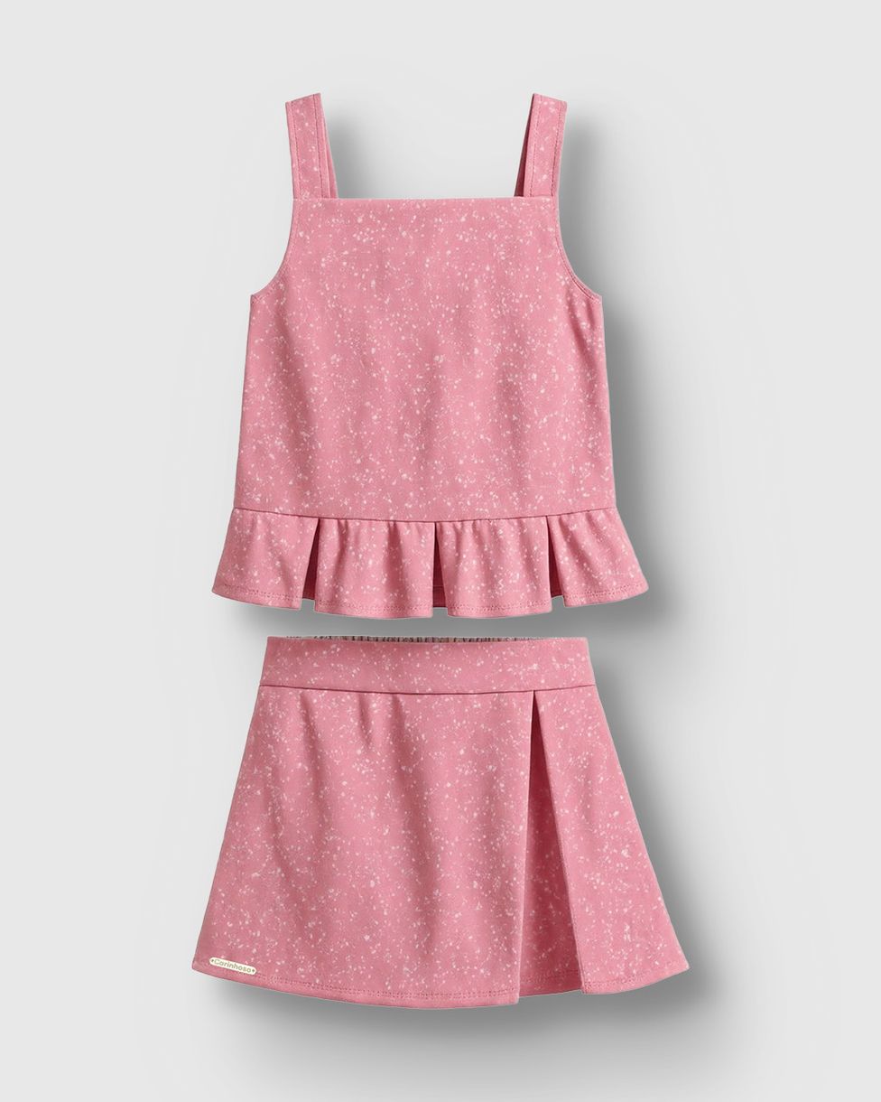 O Conjunto Menina Regata E Shorts Saia Detalhe Rapport Glitter - Carinhoso é delicado e cheio de charme para as garotas. Com tecido cotton light, a regata traz um toque especial com estampa rapport glitter, enquanto o shorts saia proporciona conforto e liberdade para o dia a dia.