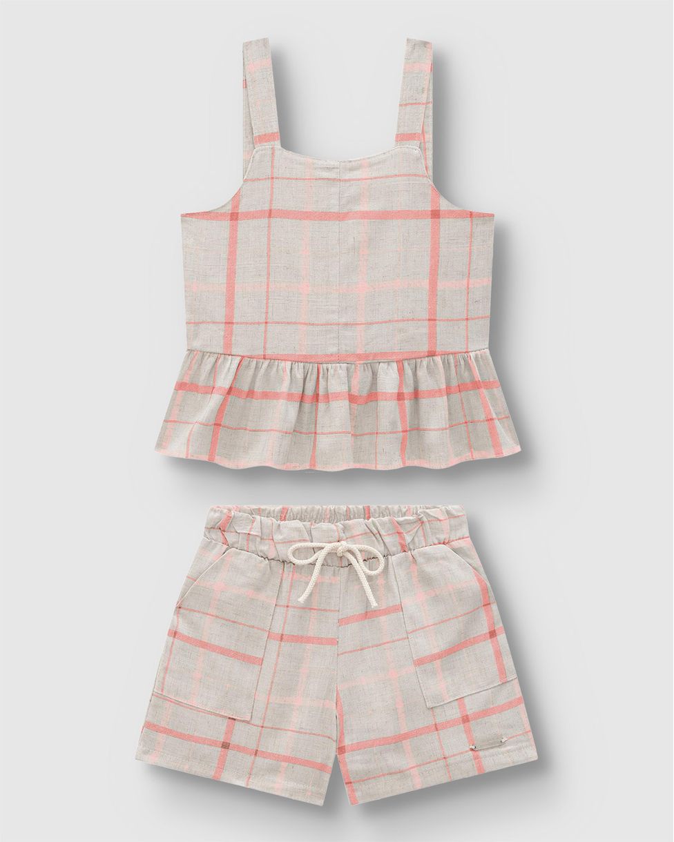 Conjunto Menina Regata E Shorts Xadrez Em Viscolinho Texturizado - Carinhoso