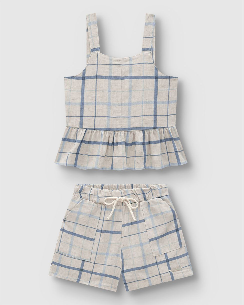 Conjunto Menina Regata E Shorts Xadrez Em Viscolinho Texturizado - Carinhoso