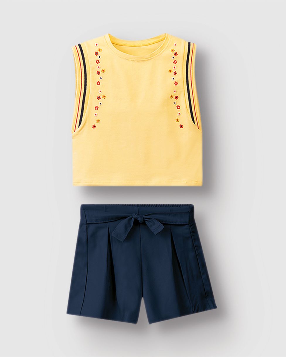 Conjunto Menina Shorts Detalhe Faixa Frontal Em Crepe De Viscose - Carinhoso