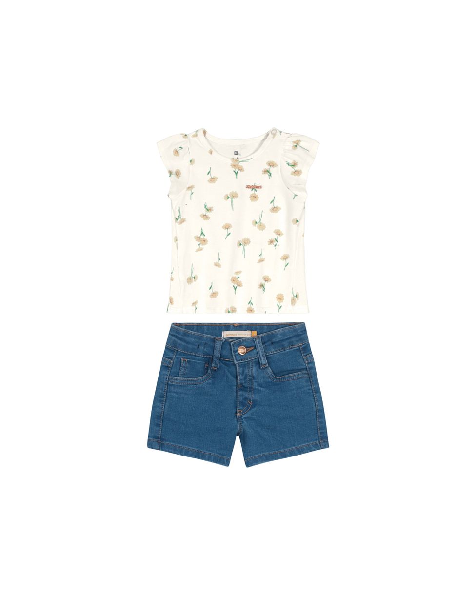 Conjunto Menina Shorts Jeans Com Elastano Carinhoso