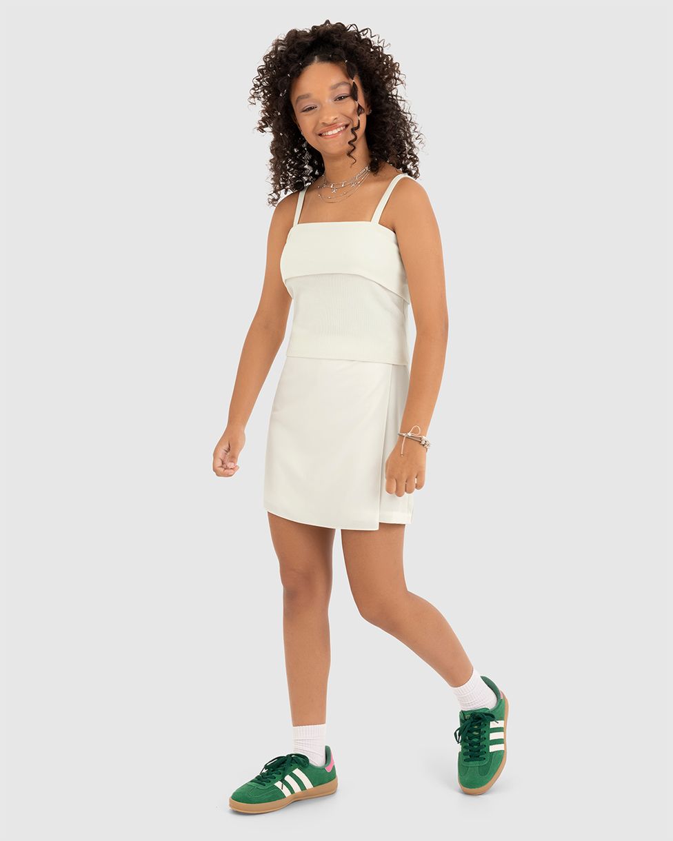 Conjunto Menina Blusa Cropped Decote Reto E Shorts Saia Malwee Kids