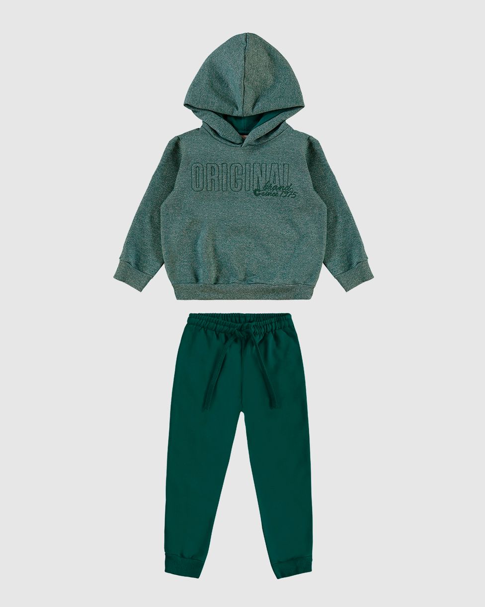 Conjunto Menino Blusão Com Capuz Em Moletom Rajado Flanelado - Carinhoso