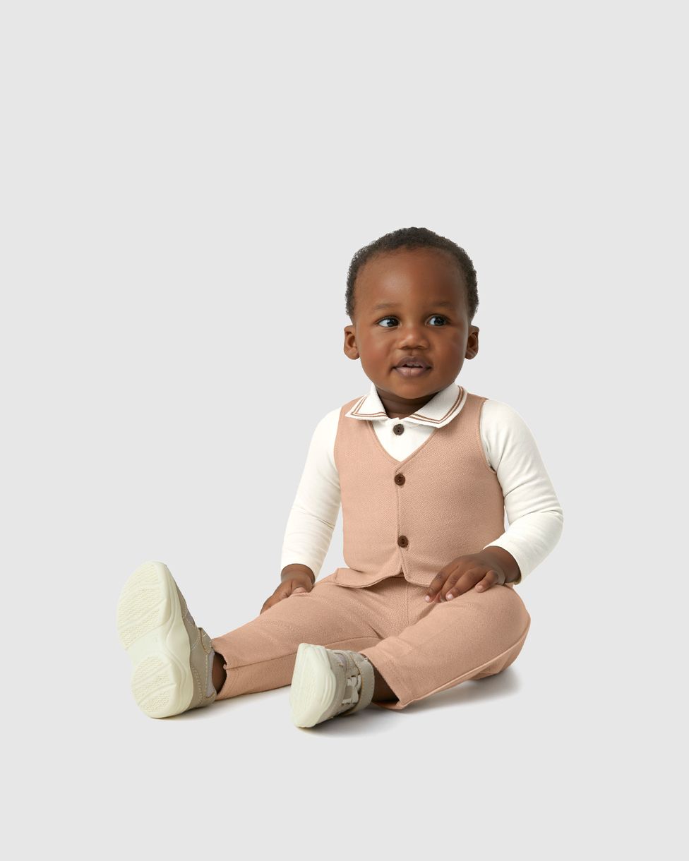 O Conjunto Menino Body Manga Longa + Colete Botões + Calça - Carinhoso é a escolha perfeita para deixar seu bebê confortável e estiloso em todas as ocasiões. Com detalhes encantadores e tecidos macios, esse conjunto une praticidade, elegância e o toque especial que a sua criança merece.