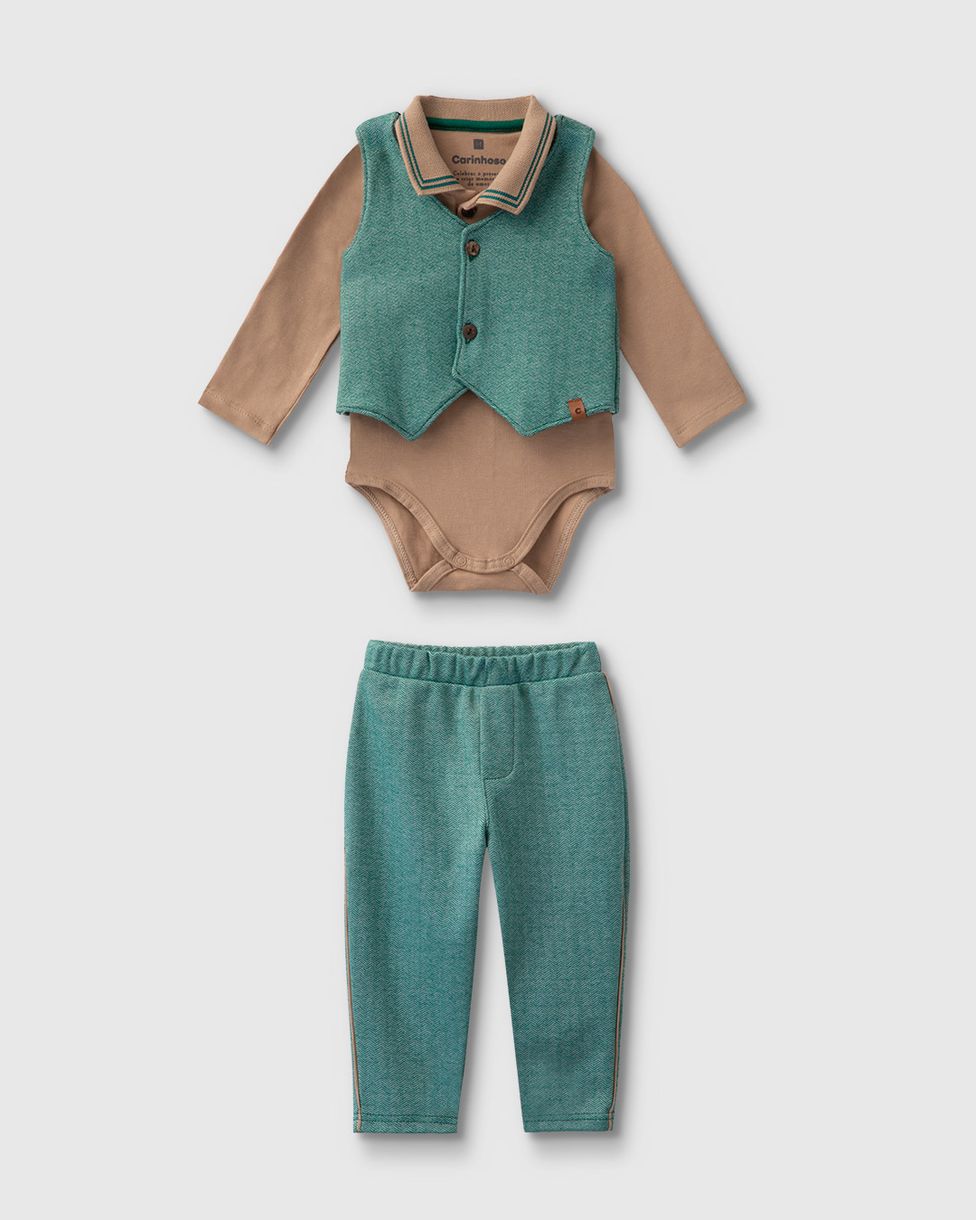 Conjunto Menino Body Manga Longa + Colete Botões + Calça - Carinhoso