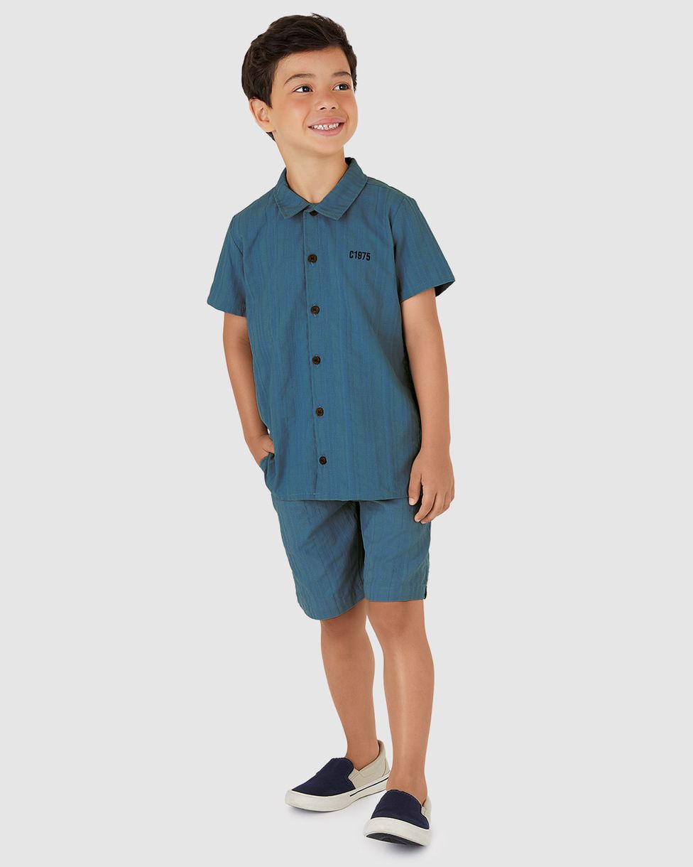Conjunto Menino Camisa Manga Curta E Bermuda Em Linho Texturizado - Carinhoso