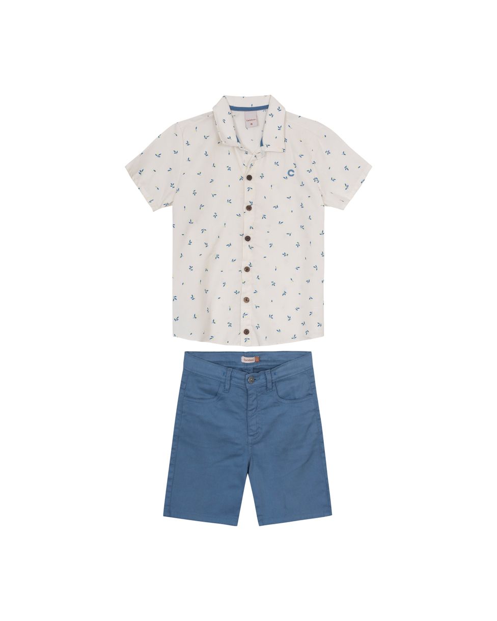 Conjunto Menino Camisa Manga Curta Em Algodão Texturizado - Carinhoso