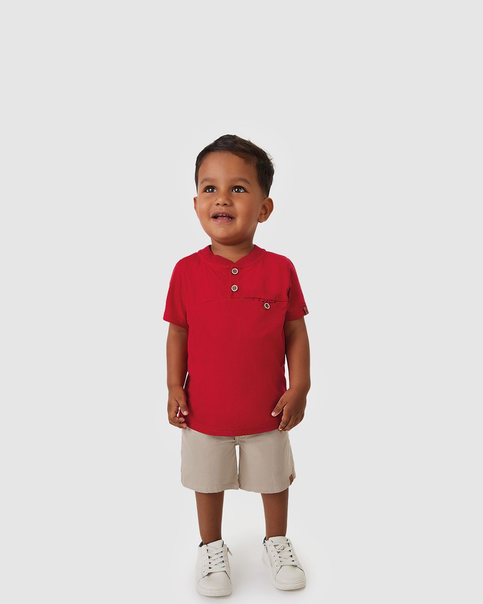 Conjunto Menino Camisa Peitilho Com Botões E Bermuda Em Algodão - Carinhoso Vermelho - 1