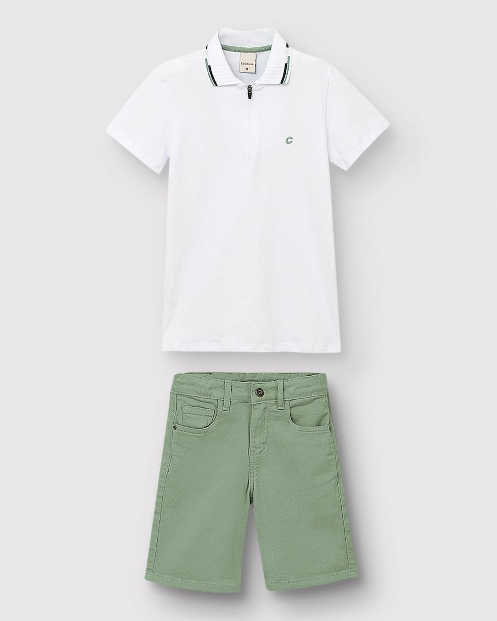 Conjunto Menino Camisa Polo Peitilho Com Zíper Em Piquet Stretch - Carinhoso