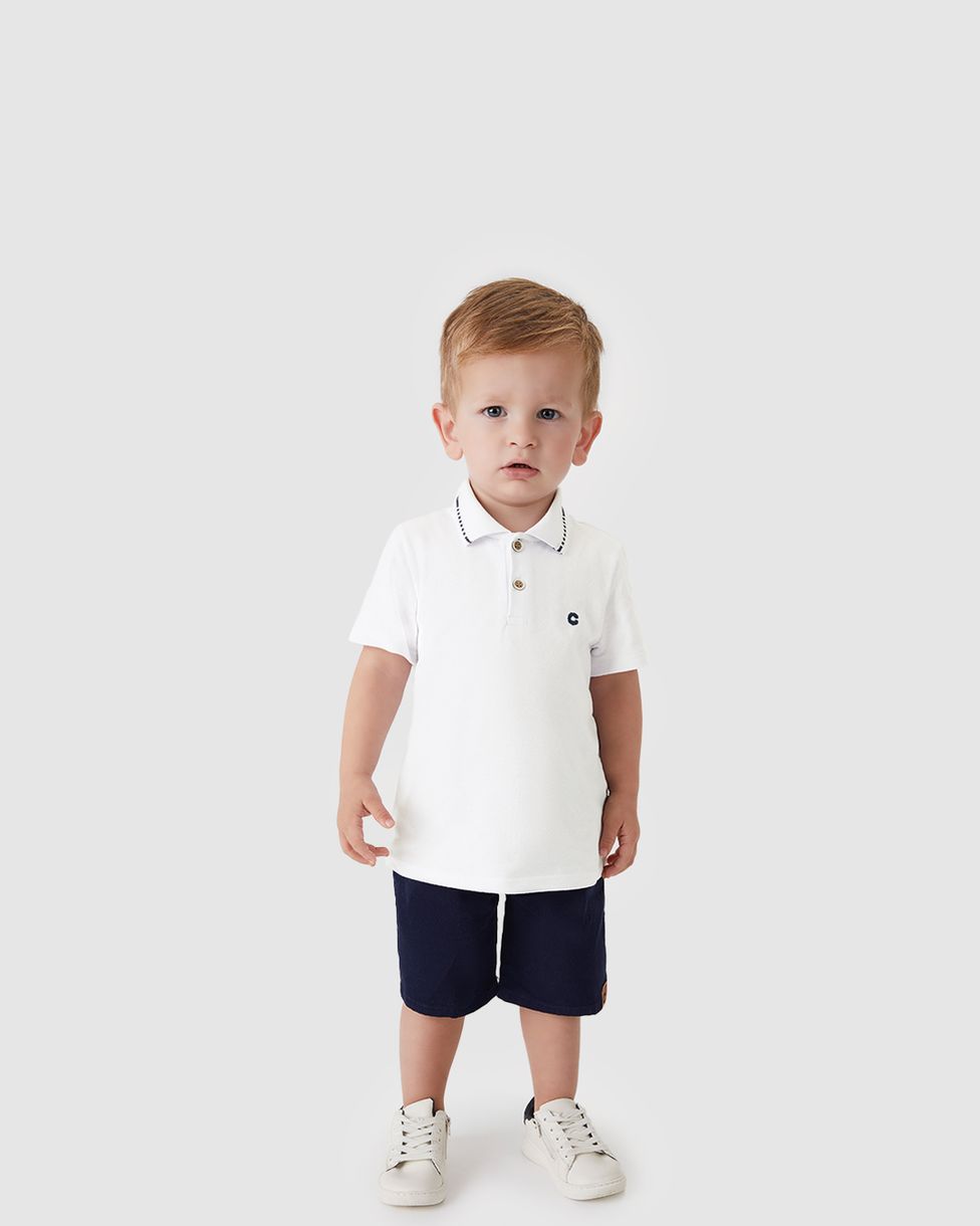 Conjunto Menino Camisa Polo Peitilho E Bordado Frontal Em Algodão - Carinhoso Branco - 1