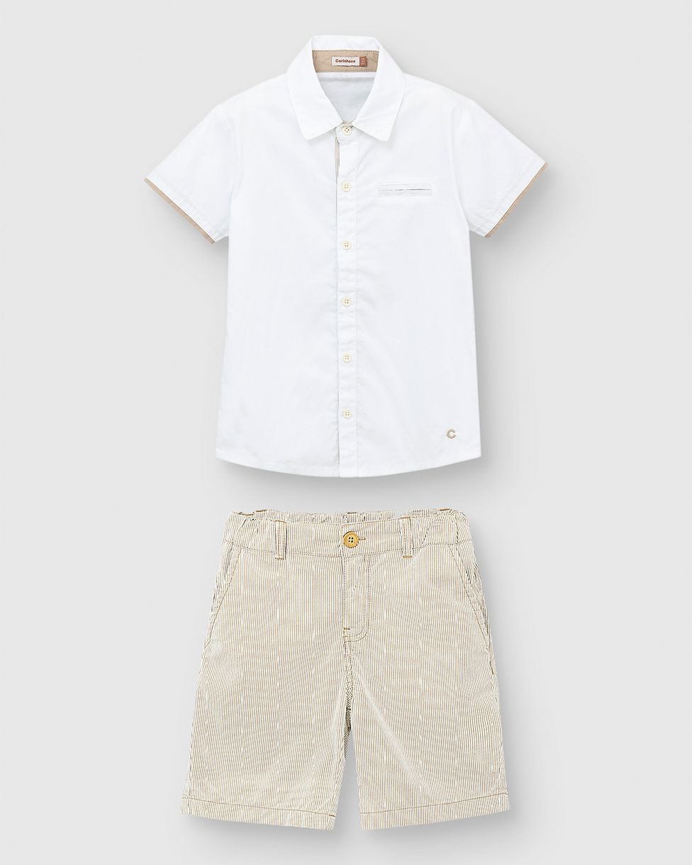 Conjunto Menino Camisa Tradicional E Bermuda Em Algodão - Carinhoso