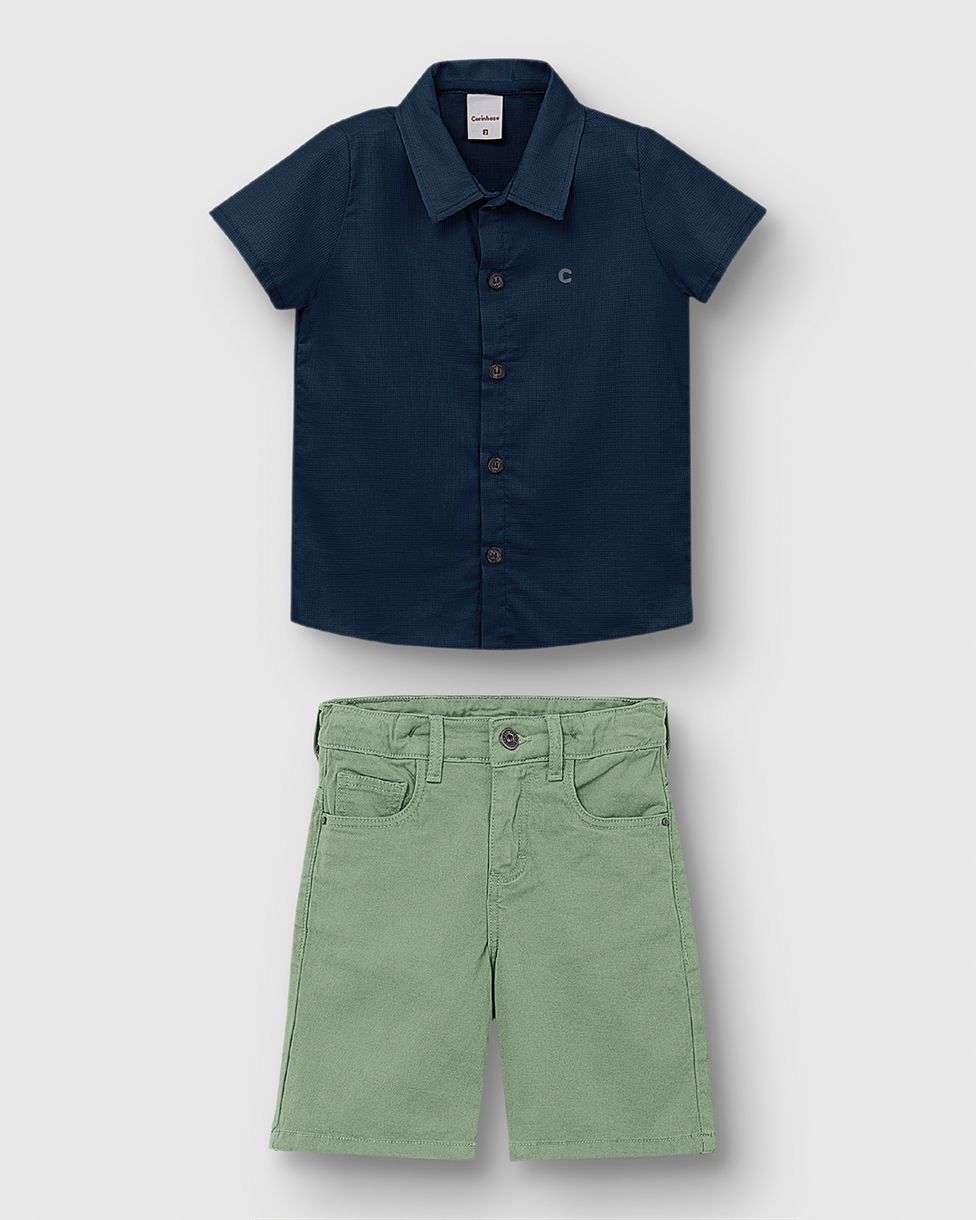 Conjunto Menino Camisa Tradicional Em Algodão Texturizado - Carinhoso