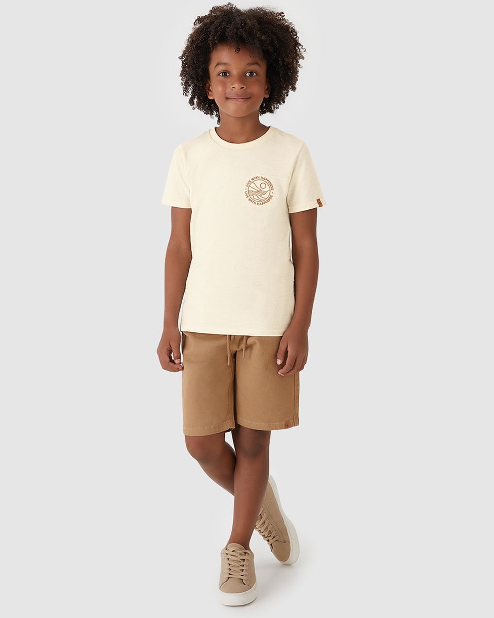 Conjunto Menino Camiseta Bordado Frontal Malha Linho Texturizada - Carinhoso