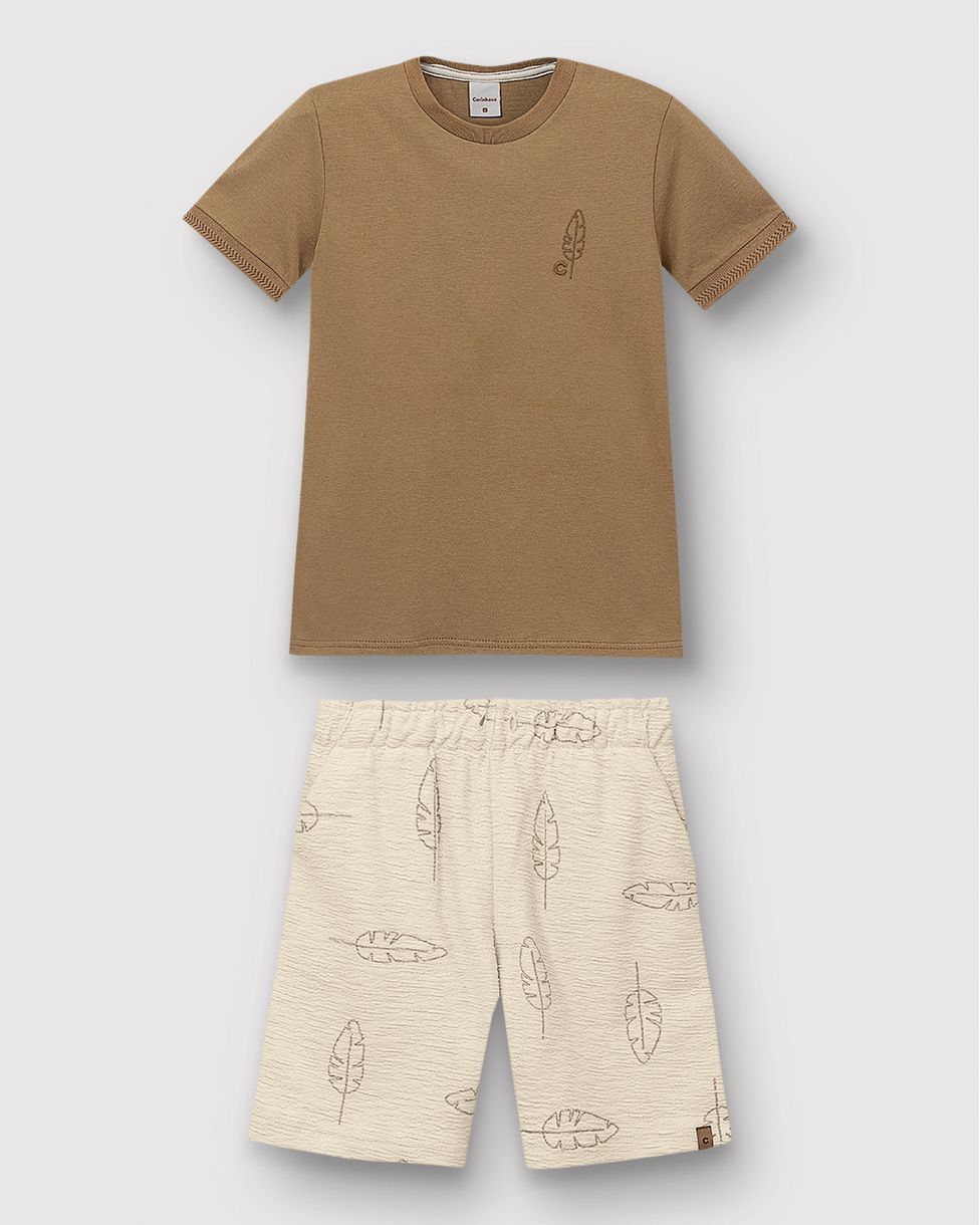Conjunto Menino Camiseta Bordado Peitoral Em Algodão - Carinhoso