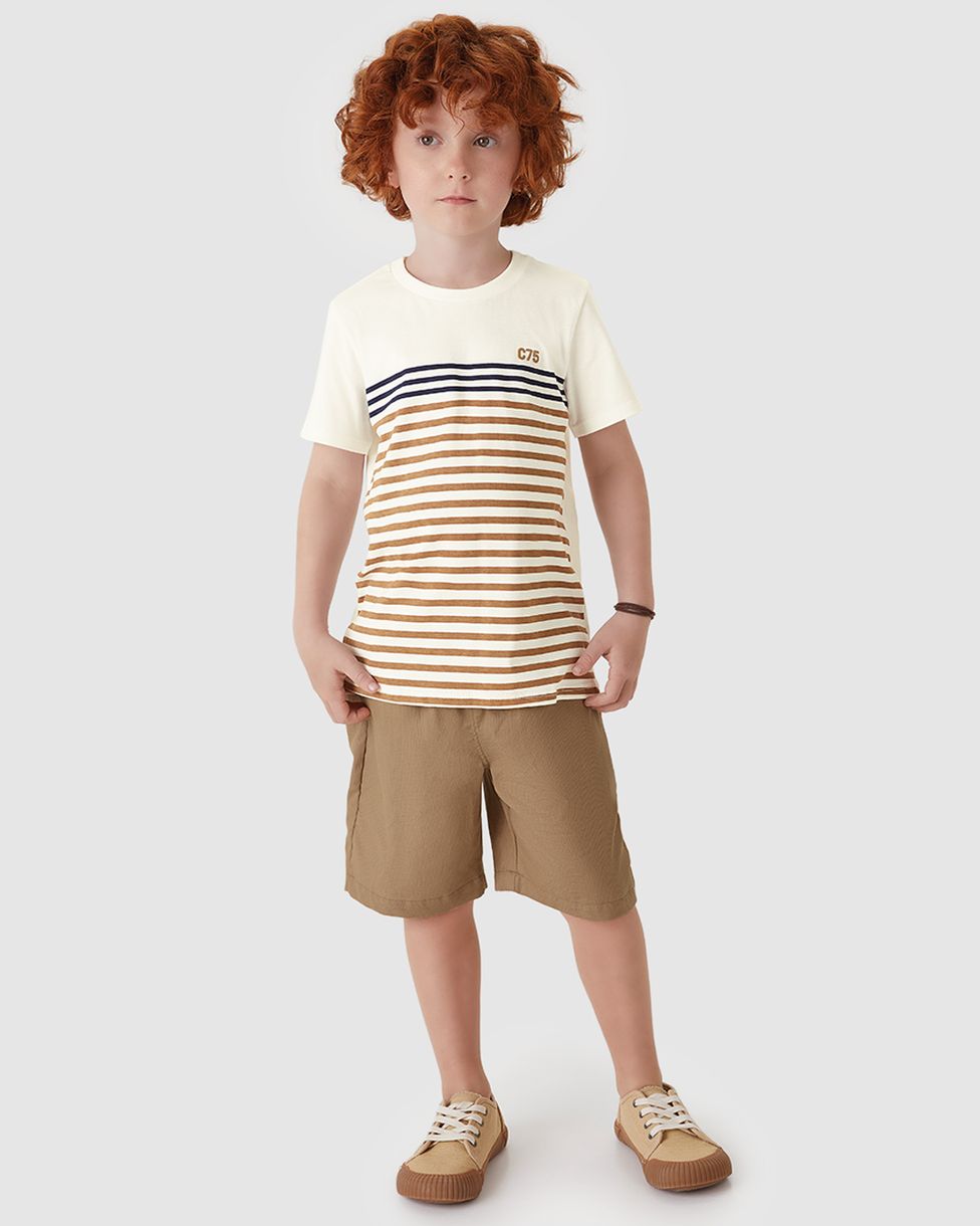 Conjunto Menino Camiseta Com Estampa Listras Em Algodão - Carinhoso Off White - 10