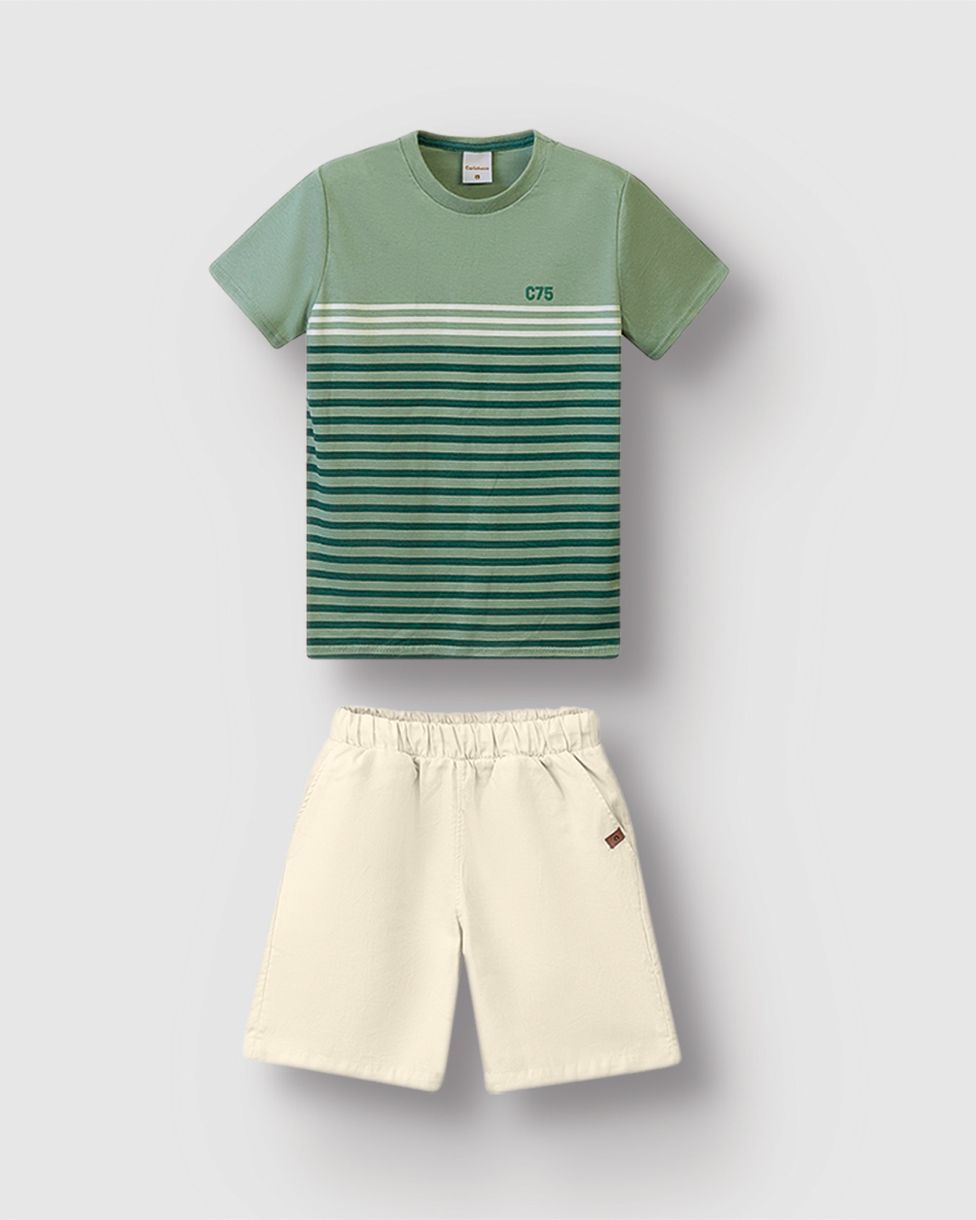 Conjunto Menino Camiseta Com Estampa Listras Em Algodão - Carinhoso