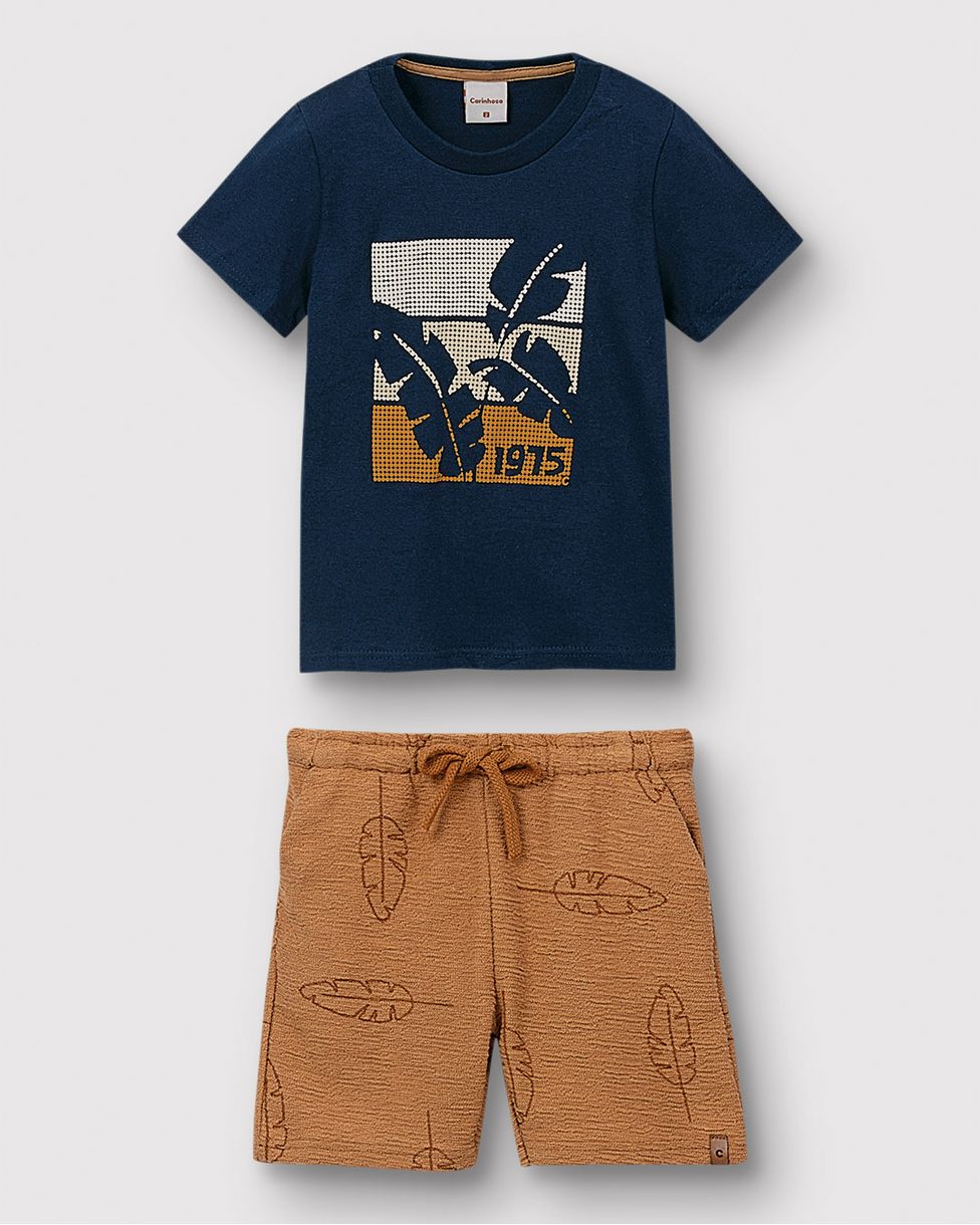 InfantilConjuntosConjuntos CurtosConjunto Menino Camiseta Estampa Puff + Bermuda Cadarço Frontal - Carinhoso