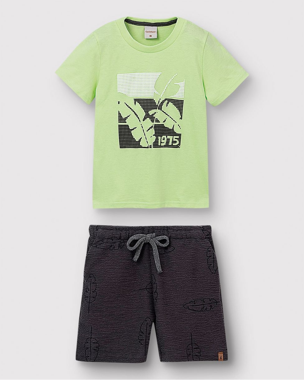 Conjunto Menino Camiseta Estampa Puff + Bermuda Cadarço Frontal - Carinhoso