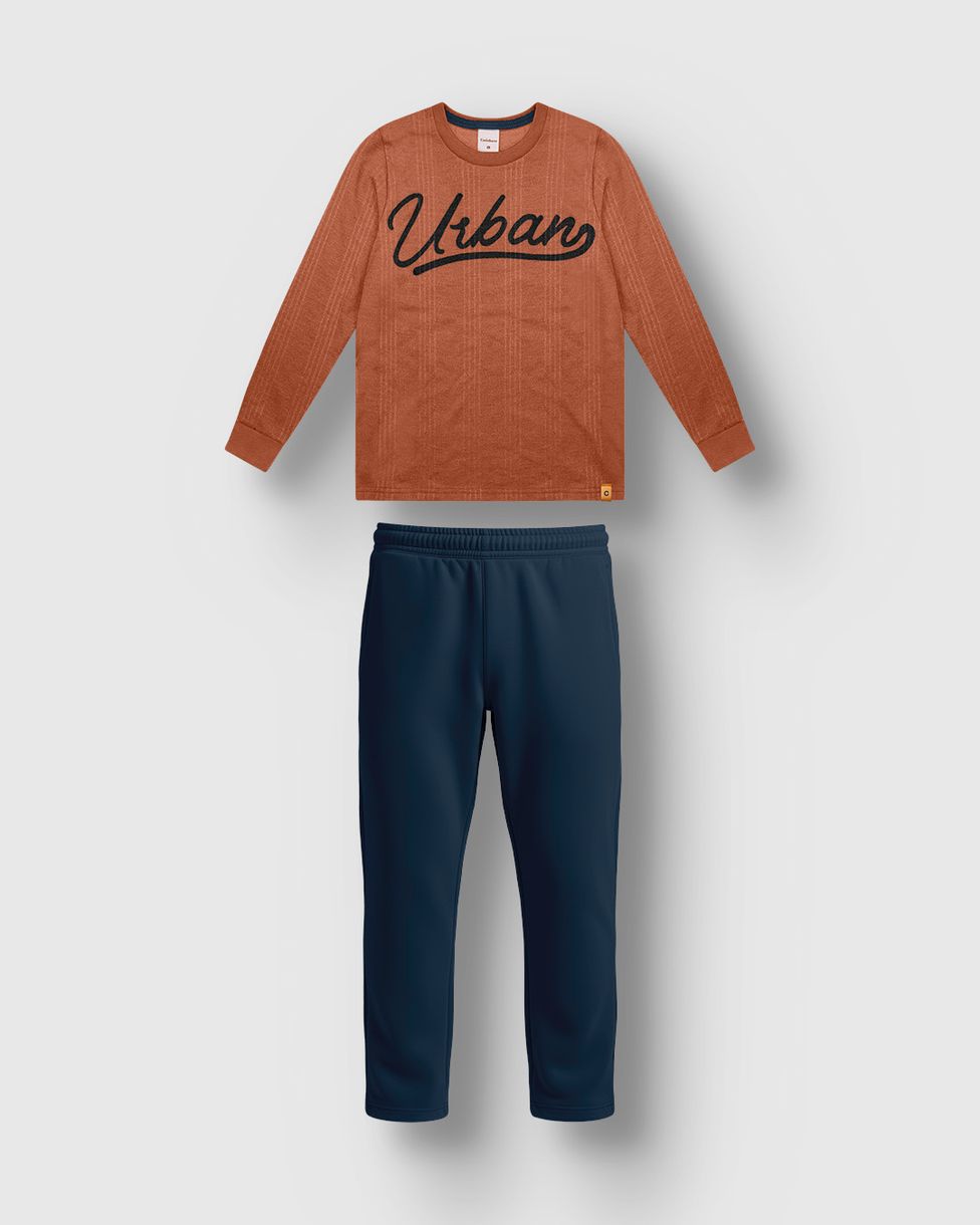 Conjunto Menino Camiseta Estampa Urban Em Moletinho Texturizado - Carinhoso