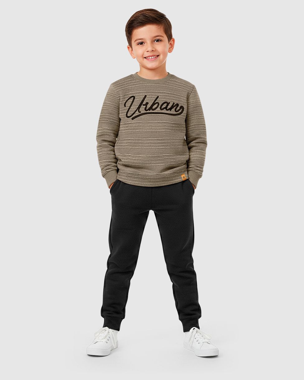 Conjunto Menino Camiseta Estampa Urban Em Moletinho Texturizado - Carinhoso