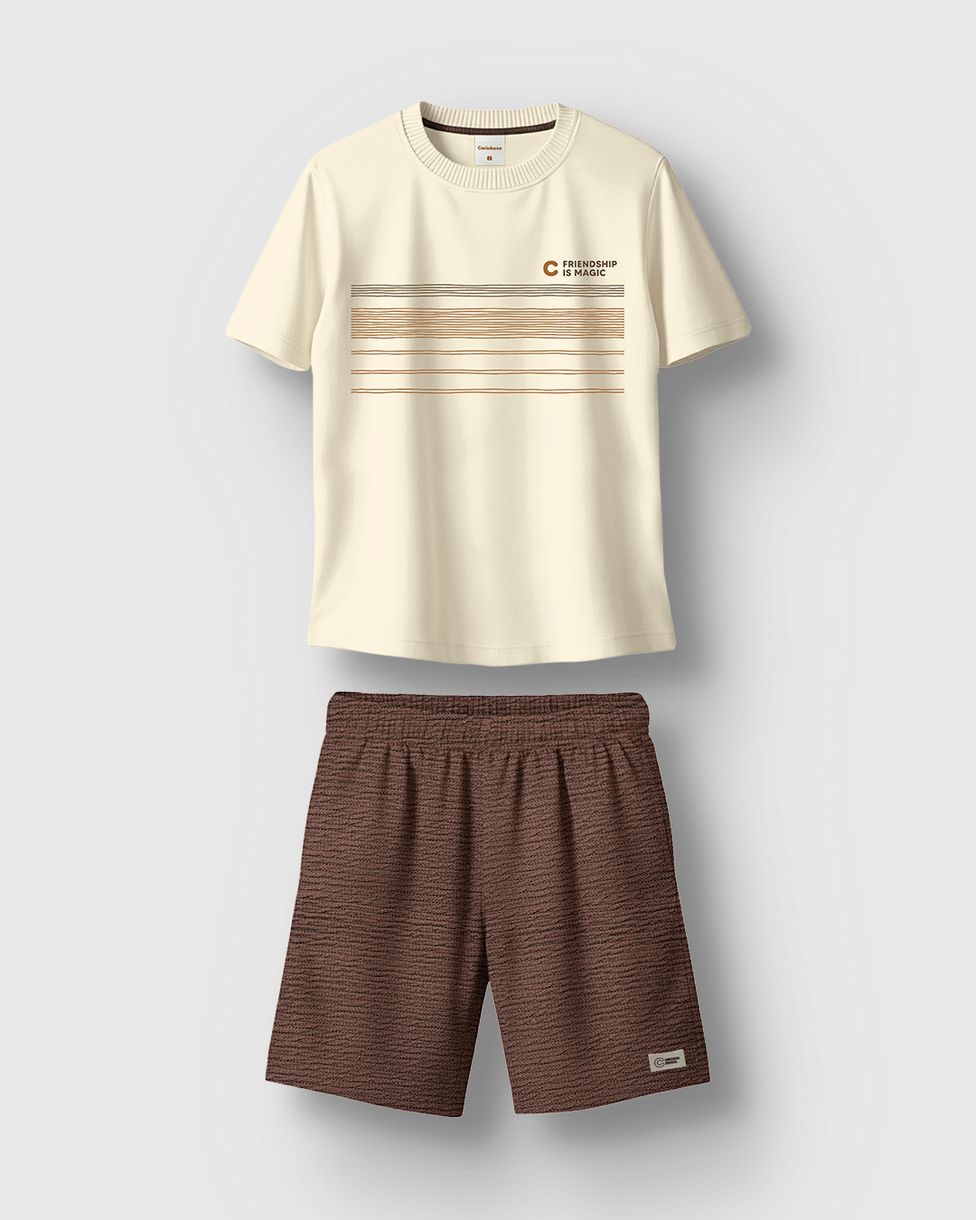 O Conjunto Menino Camiseta Friendship Is Magic E Bermuda - Carinhoso é perfeito para quem valoriza conforto e diversão! Com camiseta em meia malha, estampa HD exclusiva e bermuda texturizada, ideal para brincar e explorar o mundo com os amigos.