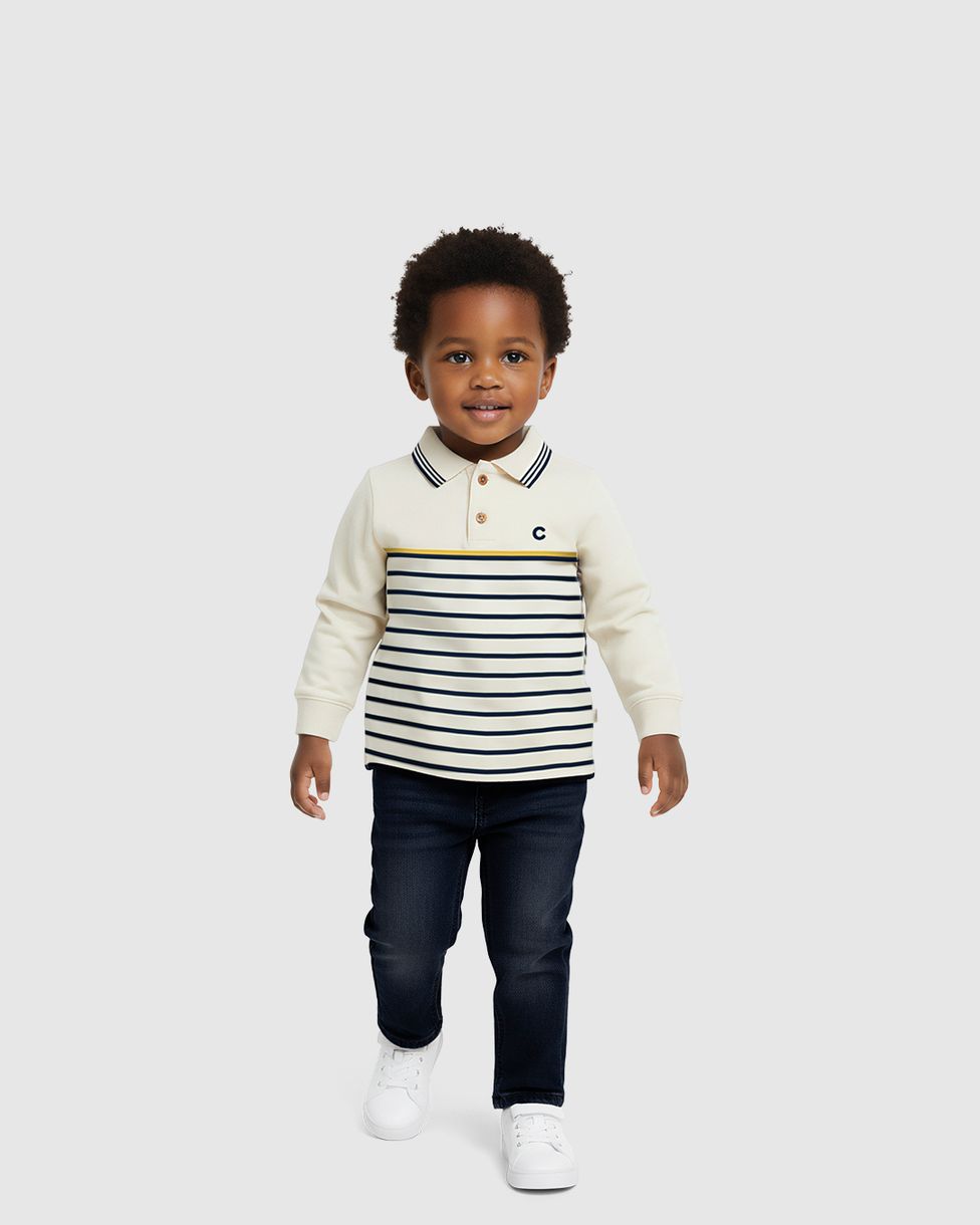 O Conjunto Camiseta + Calça da Carinhoso une o conforto da meia malha à versatilidade do jeans stretch. Com um visual moderno para o Outono Inverno, este conjunto apresenta detalhes sofisticados como o peitilho e estampas com relevo, ideal para meninos que não abrem mão do estilo.