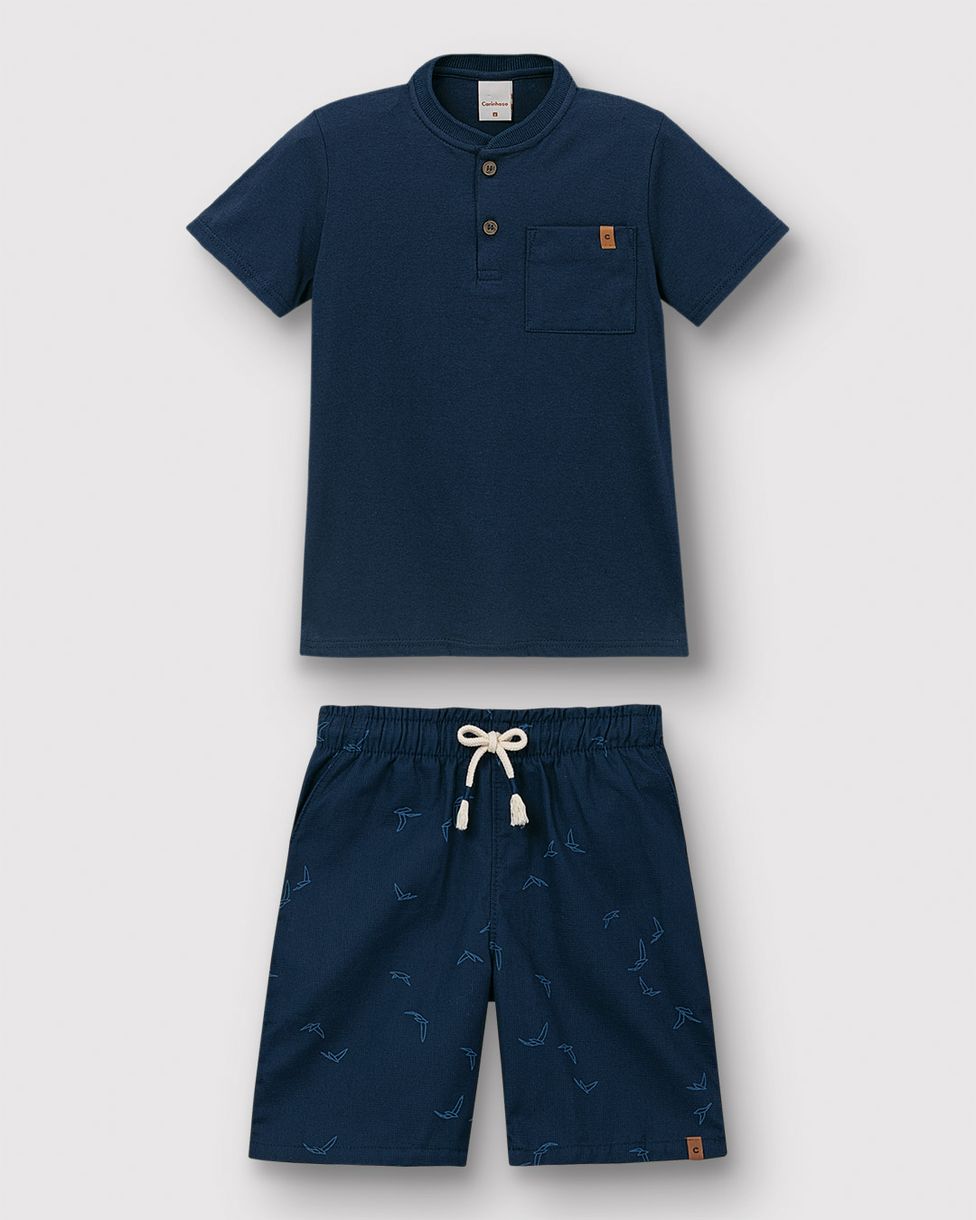 Conjunto Menino Camiseta Peitilho E Bermuda Estampada Em Algodão - Carinhoso