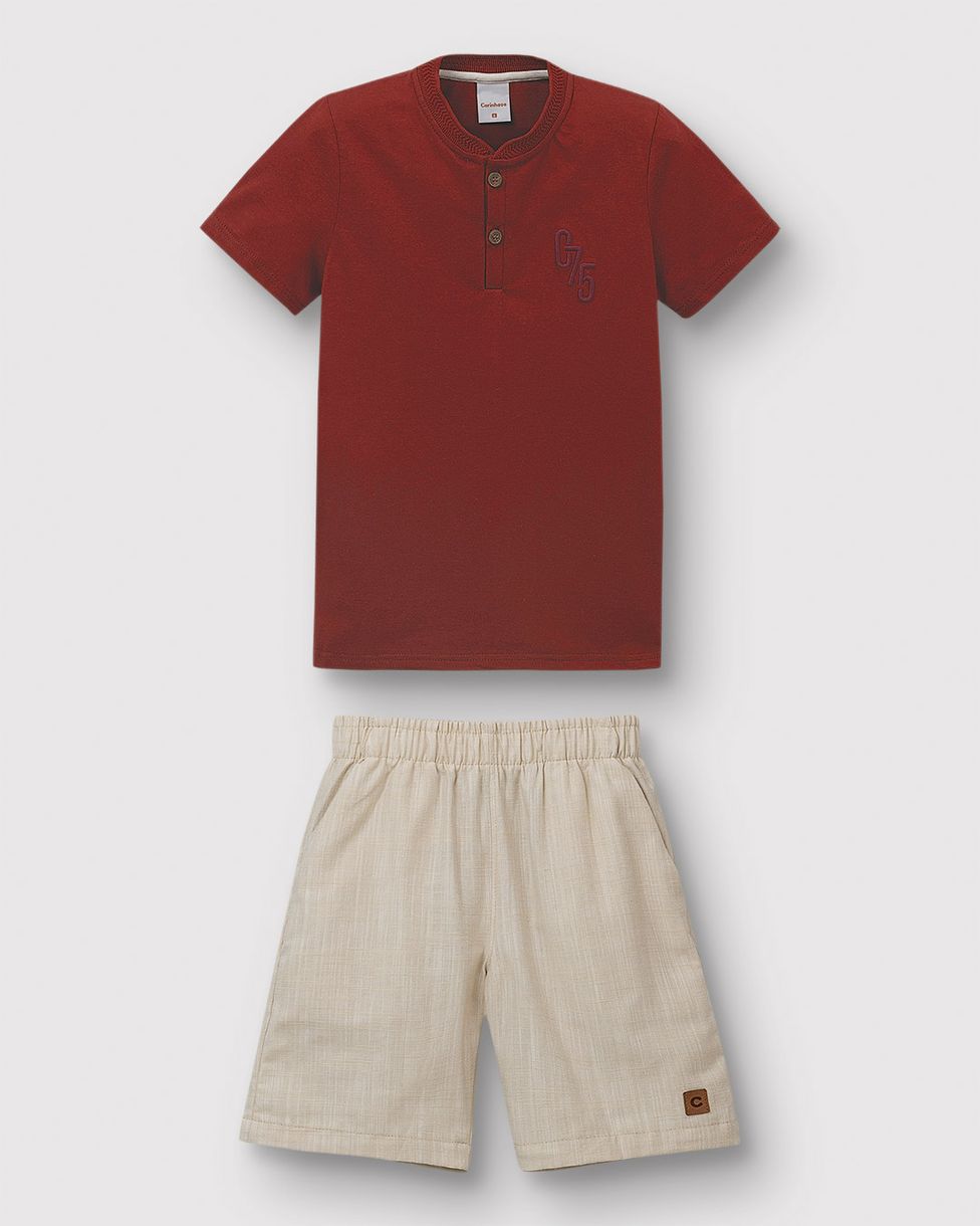 O Conjunto Menino Camiseta Peitilho e Bordado Frontal em Algodão é perfeito para unir estilo e conforto em ocasiões casuais. Com detalhes de peitilho com botões e bordado sofisticado, acompanhado de bermuda em tecido leve, é ideal para dias de diversão e descontração.
