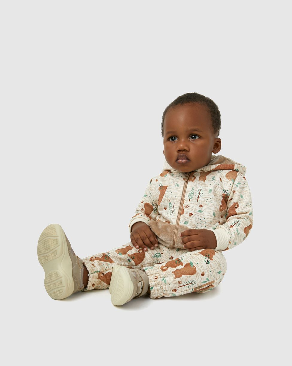 O Conjunto Bebê Estampado Jaqueta e Calça em Moletom Flanelado da Carinhoso combina praticidade e aconchego para os dias mais frios. Com um toque macio e aquecido, oferece total conforto ao bebê. A estampa moderna torna este conjunto perfeito para passeios ou momentos casuais.