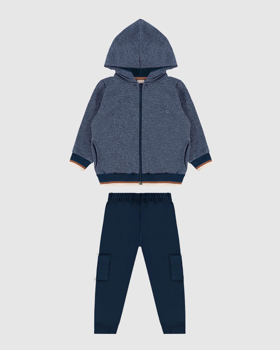 O Conjunto Menino Jaqueta Com Capuz Em Moletom Rajado Flanelado - Carinhoso é ideal para aquecer e proteger seu menino nos dias de temperaturas mais baixas. Com estilo moderno e conforto extra, este conjunto une funcionalidade e charme, garantindo um visual descolado e aconchegante para qualquer ocasião!