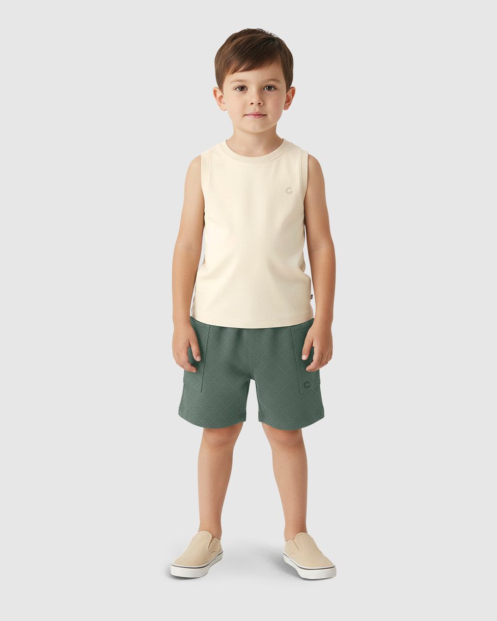 O Conjunto Menino Regata Estampa Efeito HD Costas Em Algodão - Carinhoso traz leveza e liberdade para o dia a dia dos garotos. Com regata em meia malha e bermuda em piquet stretch, é ideal para brincar e se movimentar com conforto e estilo.