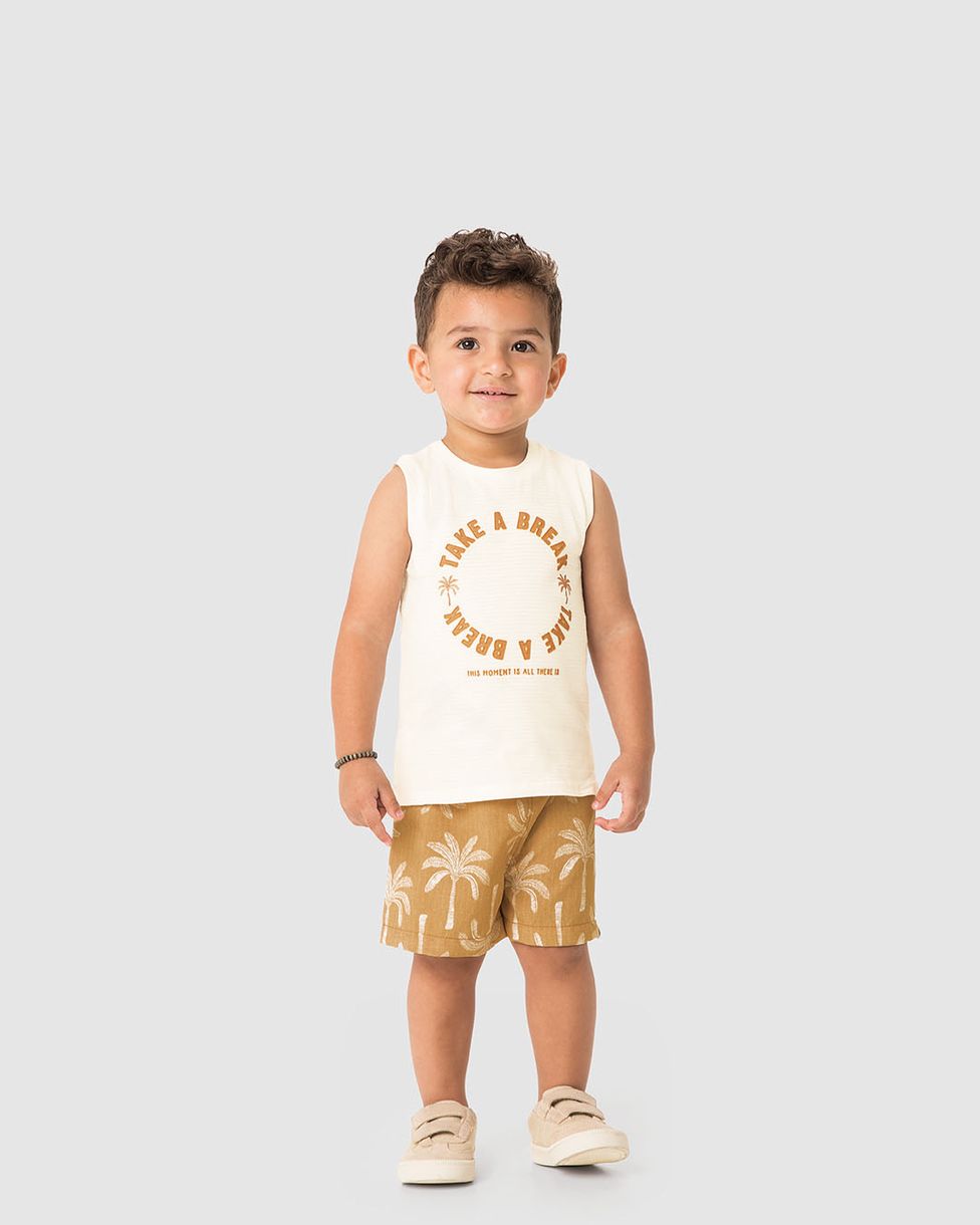O Conjunto Menino Regata Take A Break em Malha Texturizada é perfeito para os dias quentes e cheios de diversão. Com regata confortável e estampa em efeito HD, acompanhada de bermuda microfibra com rapport sublimático, garante estilo e praticidade para momentos especiais e descontraídos.