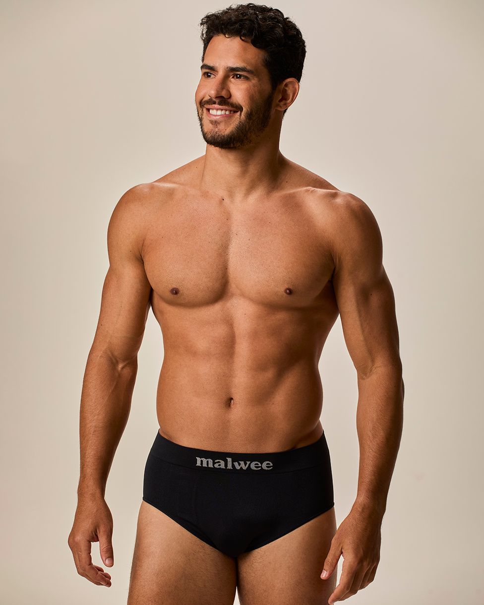 Cueca Masculina Slip Cós Elástico Logo Malwee Em Malha Poliamida Preto - G