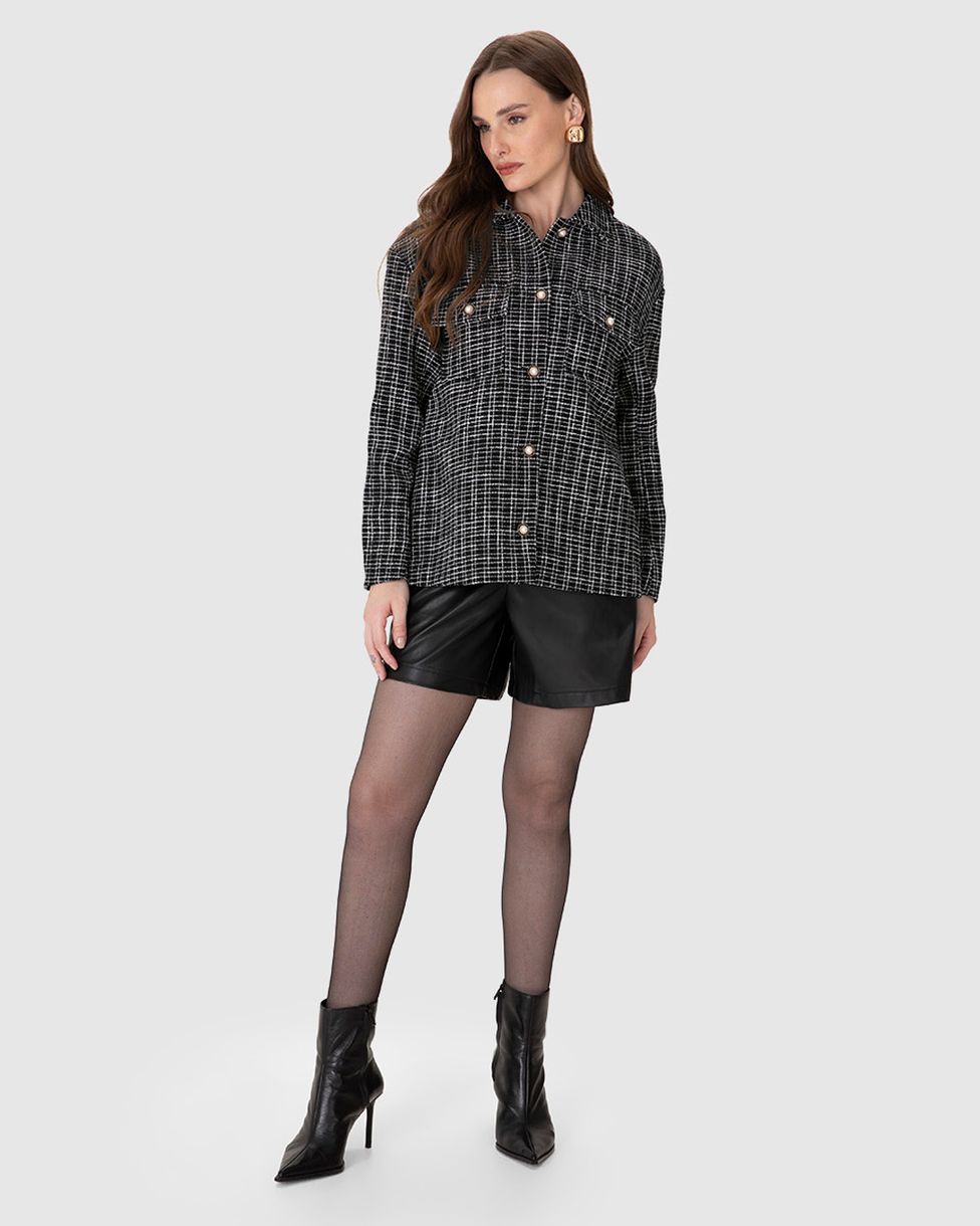 Jaqueta Ampla Feminina Bolso Lapela E Botão Em Tweed - ENFIM
