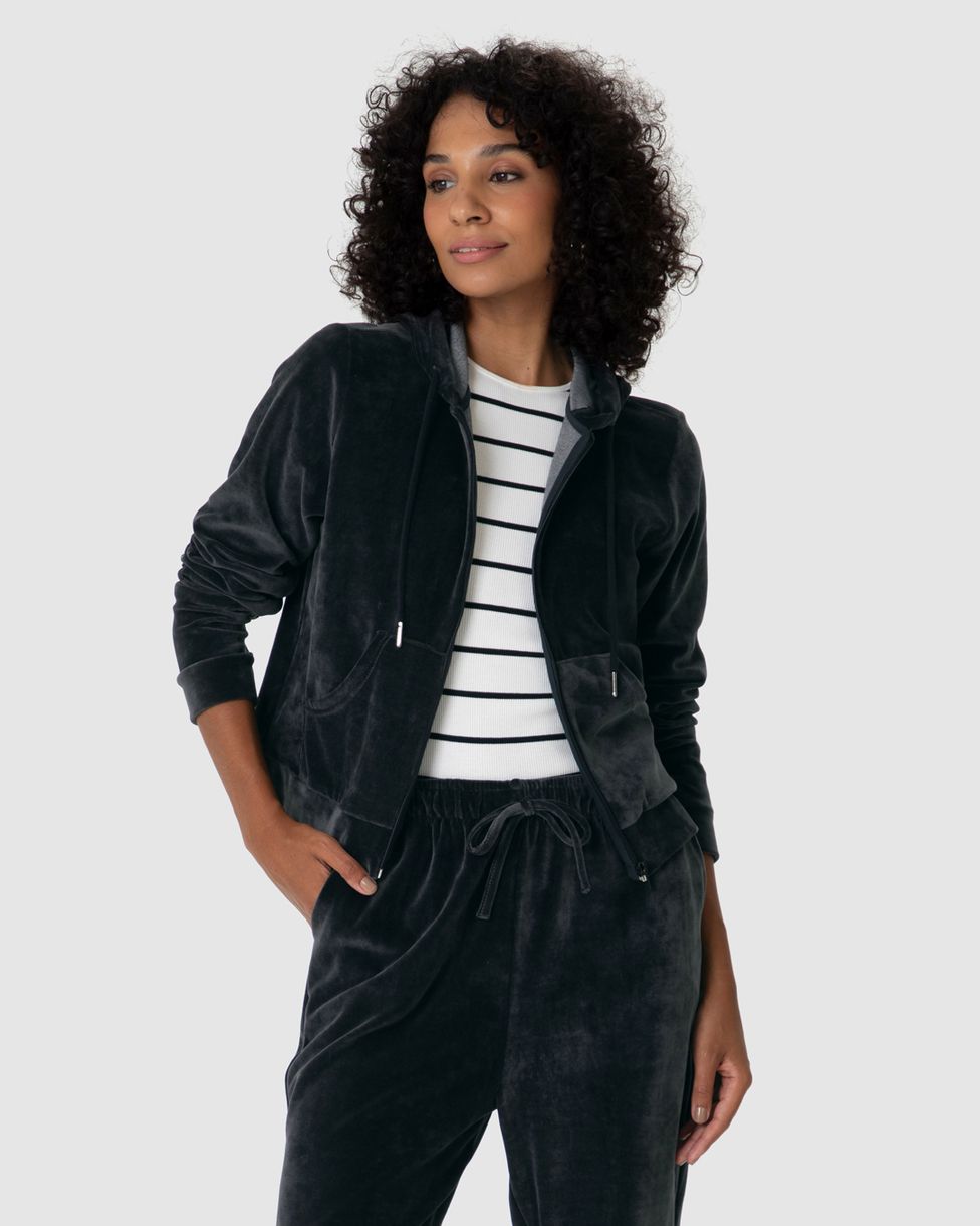 Jaqueta Básica Feminina Bolso Canguru Em Malha Plush