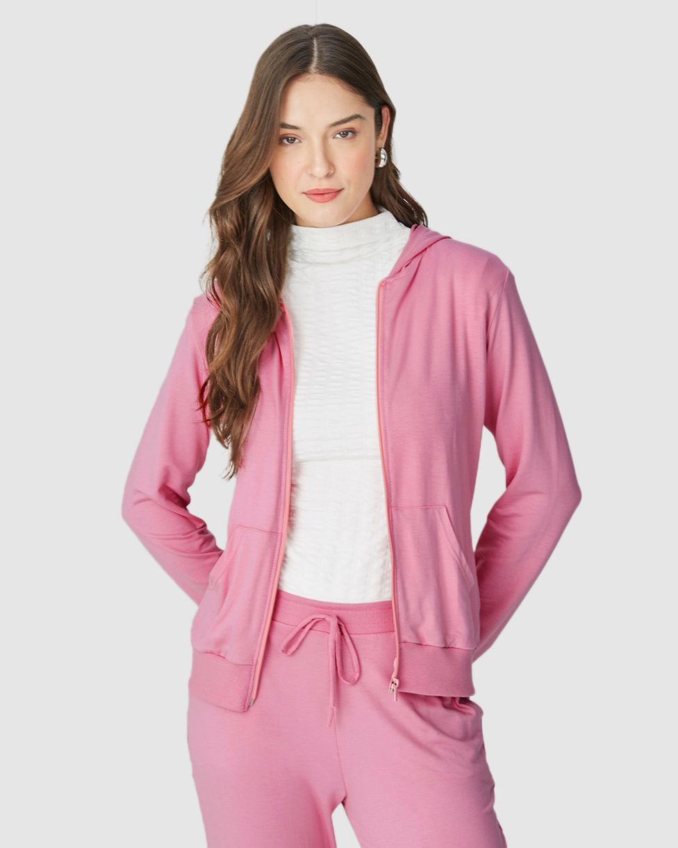 Jaqueta Básica Feminina Com Bolsos Moletinho De Viscose