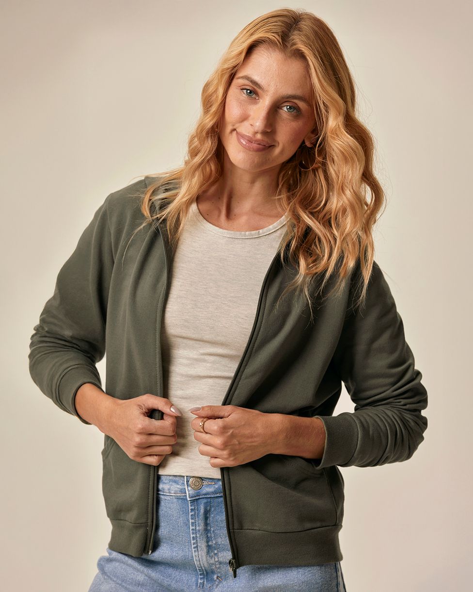 • Jaqueta Básica Feminina Em Moletom Flanelado